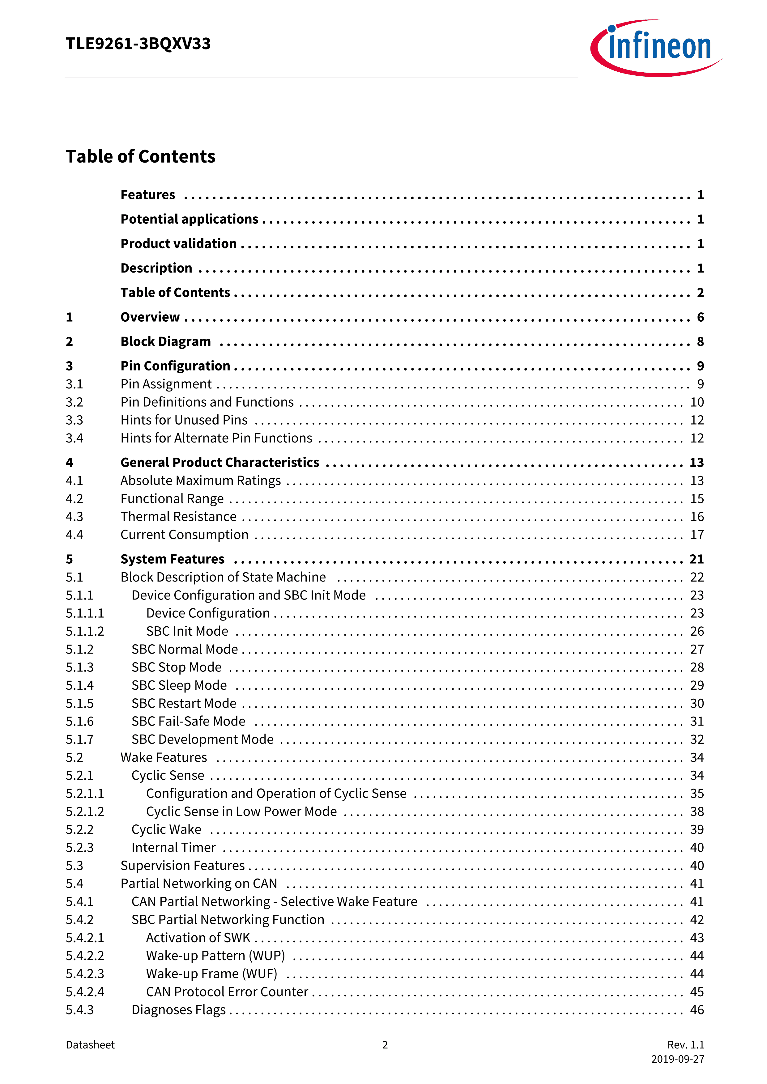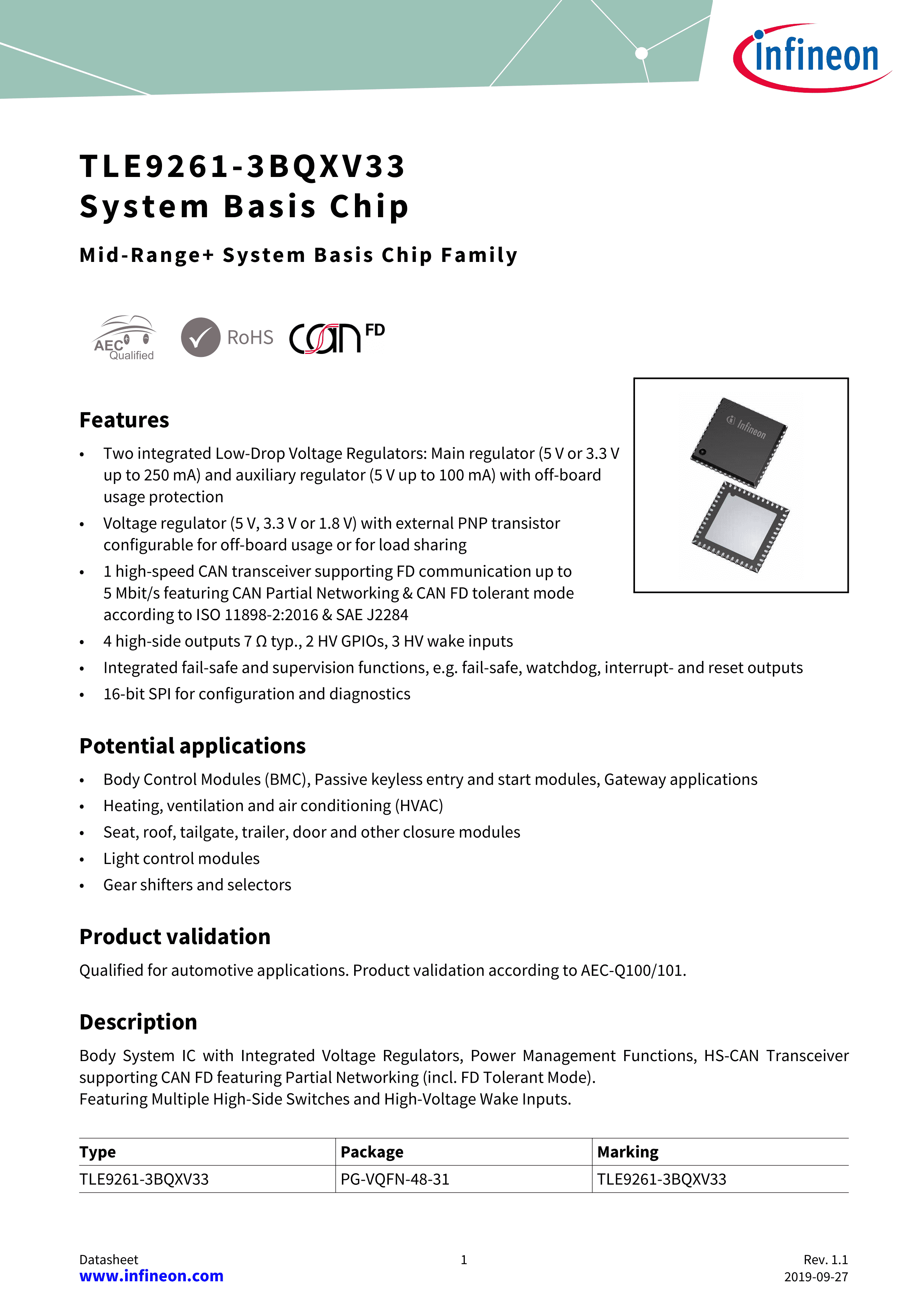 TLE9261-3BQX V33数据手册PG-VQFN-48封装Infineon(英飞凌)PDF规格