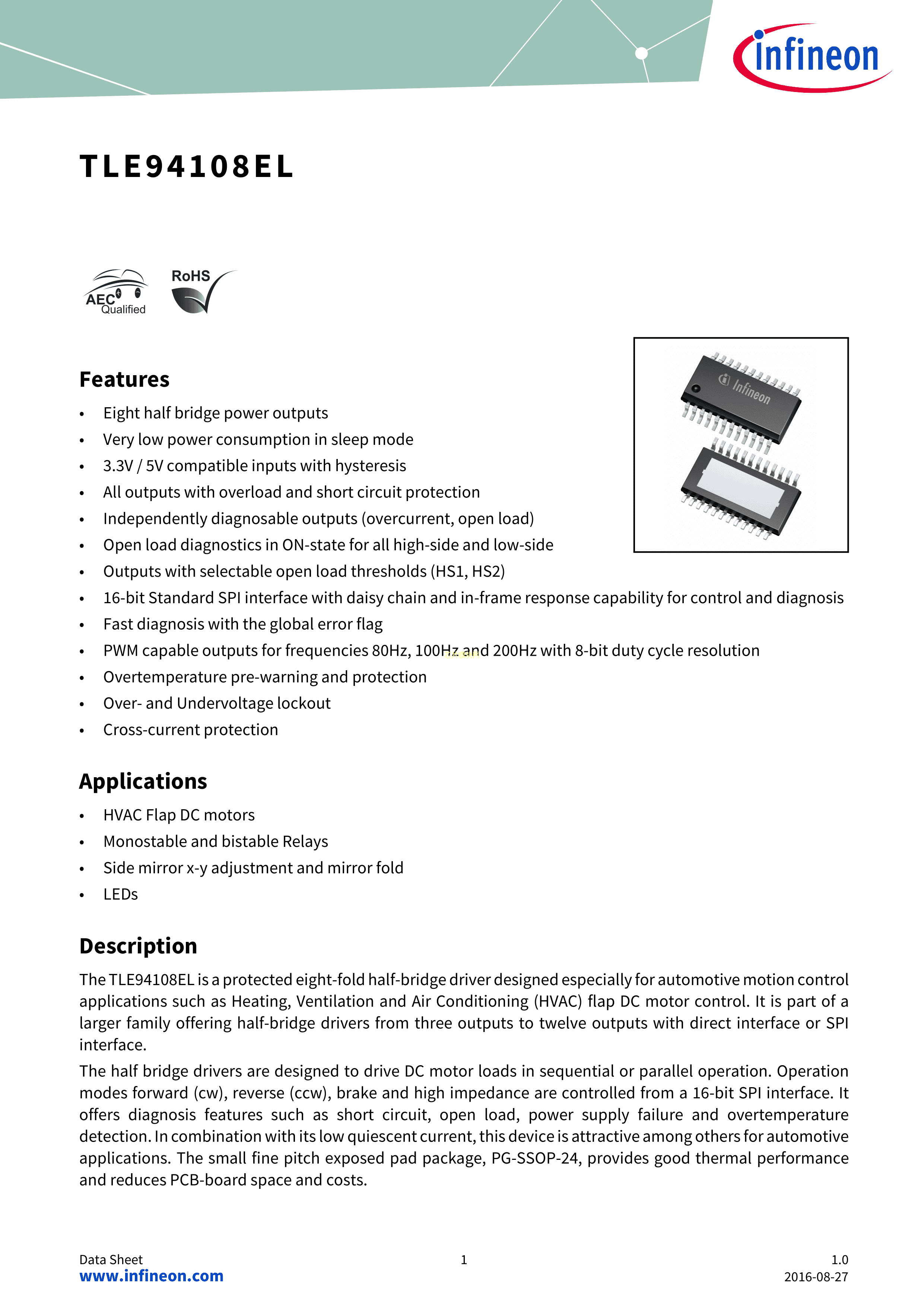 TLE94108EL数据手册PG-SSOP-24封装Infineon(英飞凌)PDF规格书,中英文下