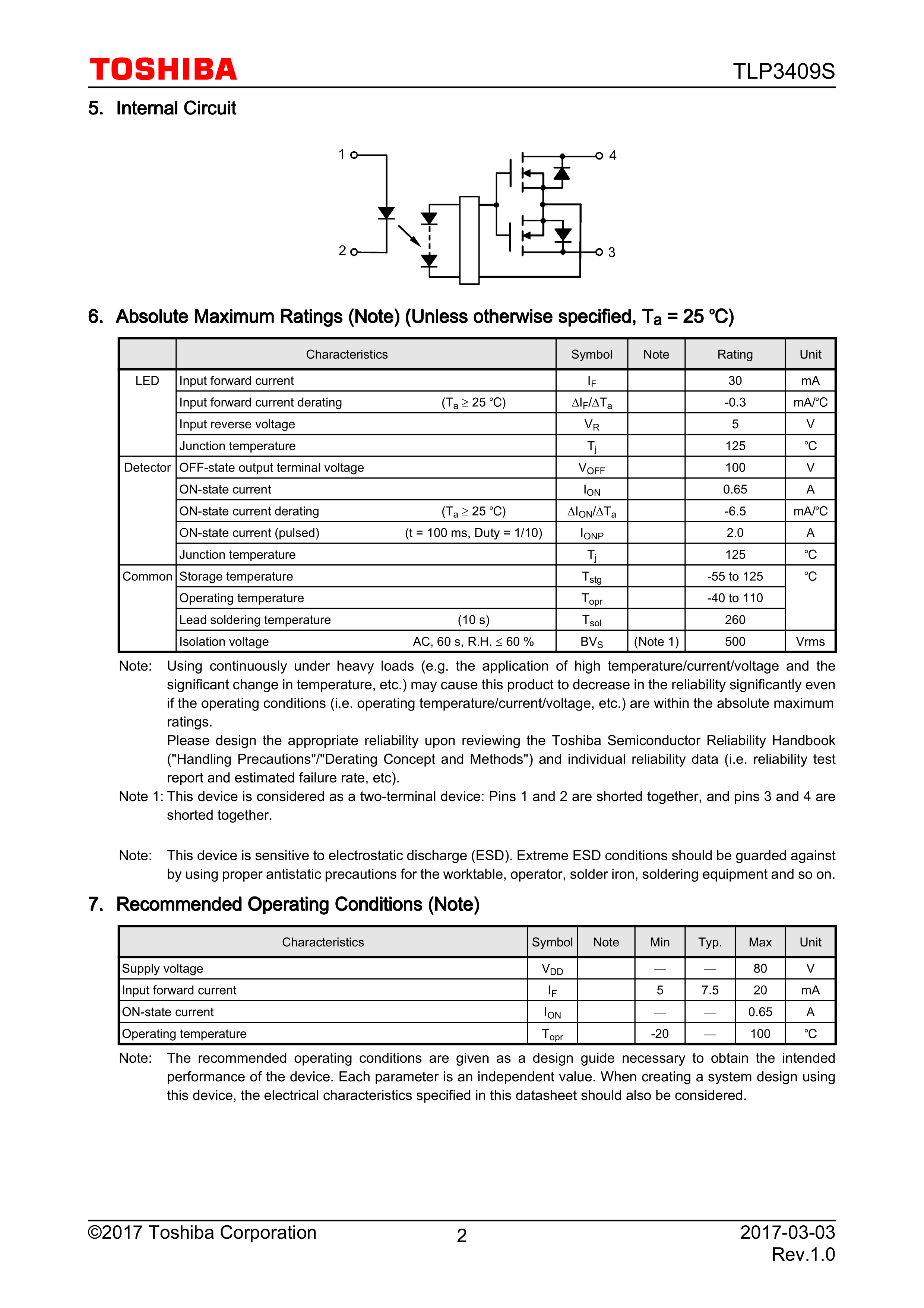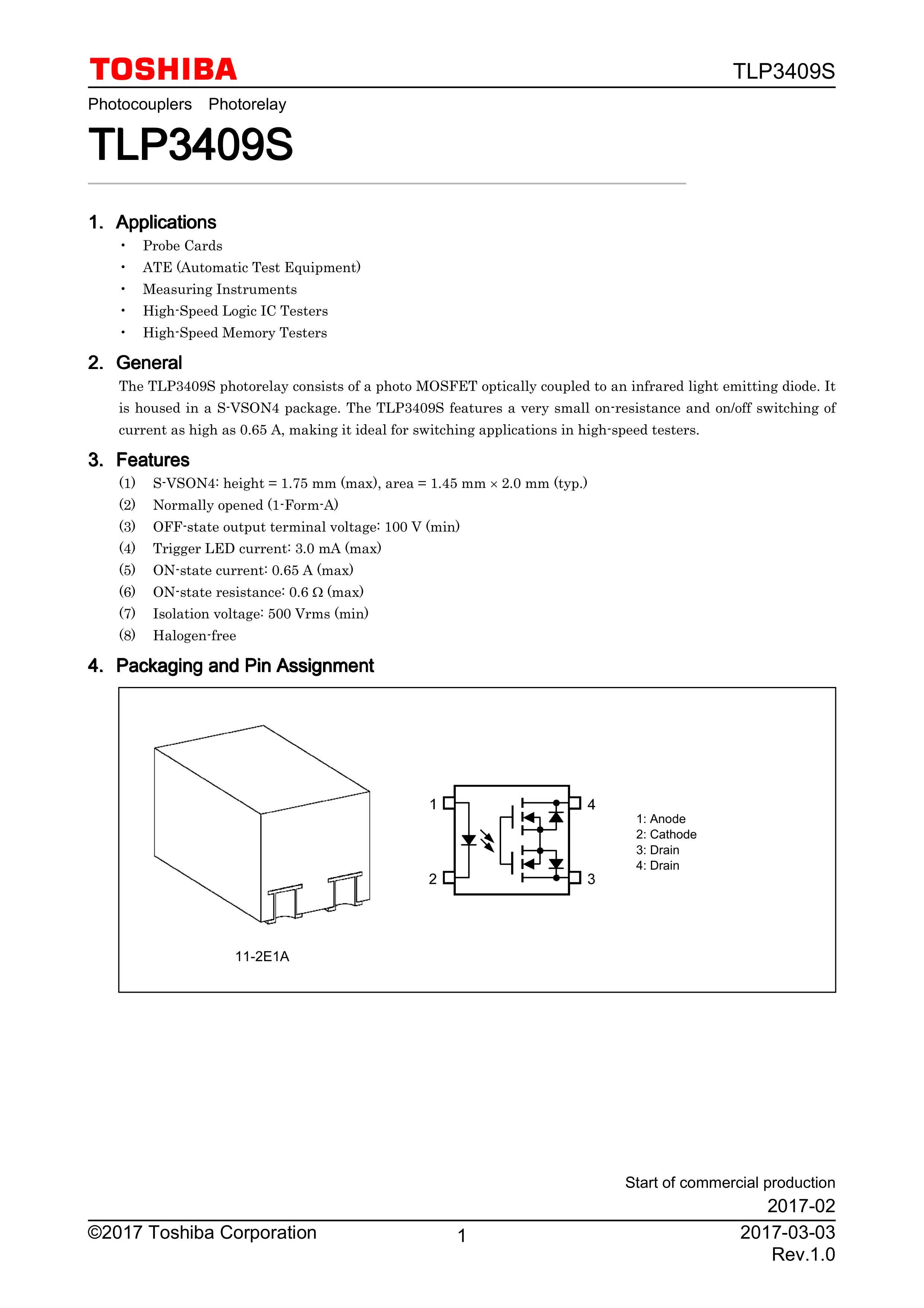TLP3409S(TPE数据手册S-VSON4封装TOSHIBA(东芝)PDF规格书,中英文下载