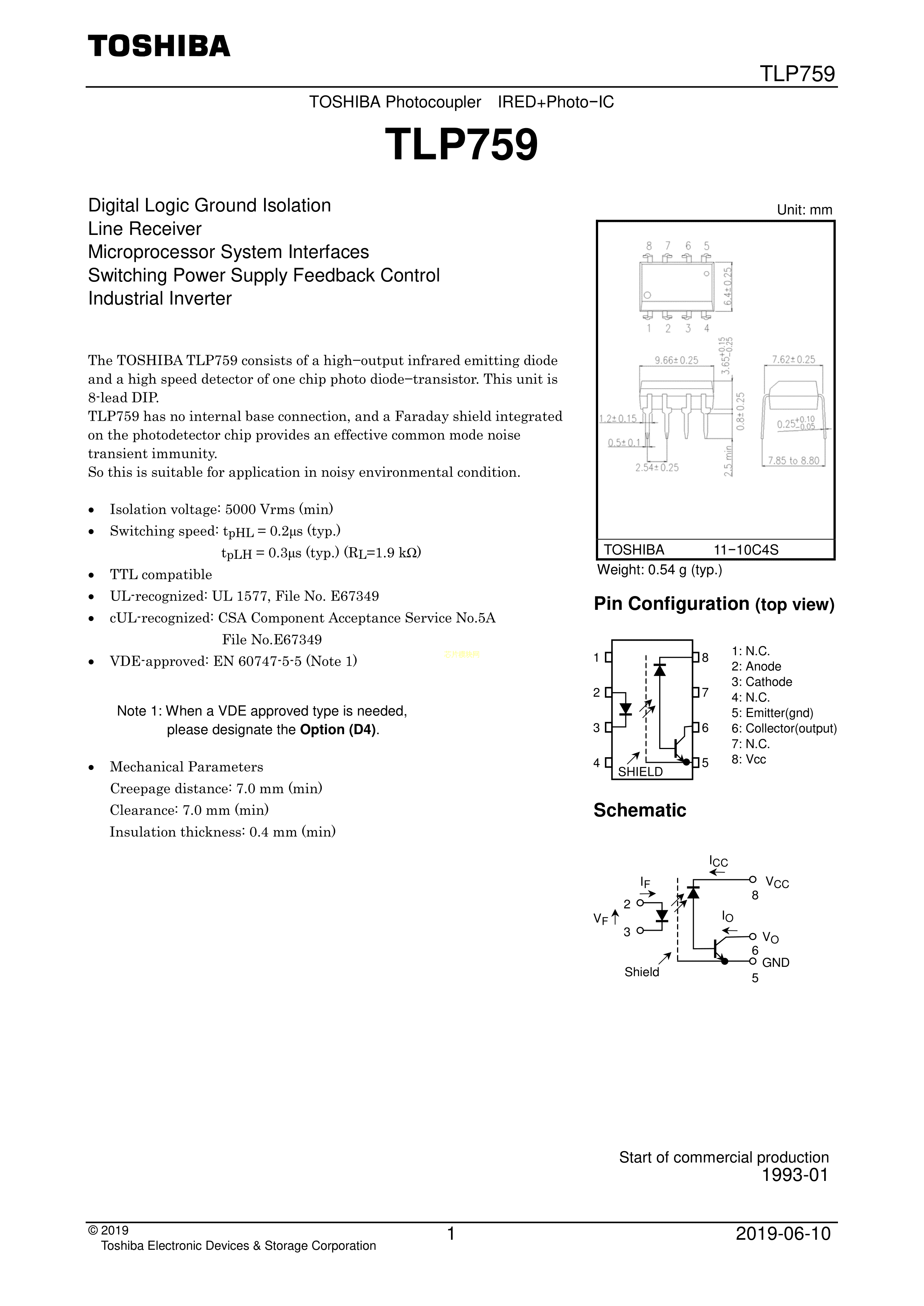 TLP759(TP1JF)数据手册-封装TOSHIBA(东芝)PDF规格书,中英文下载