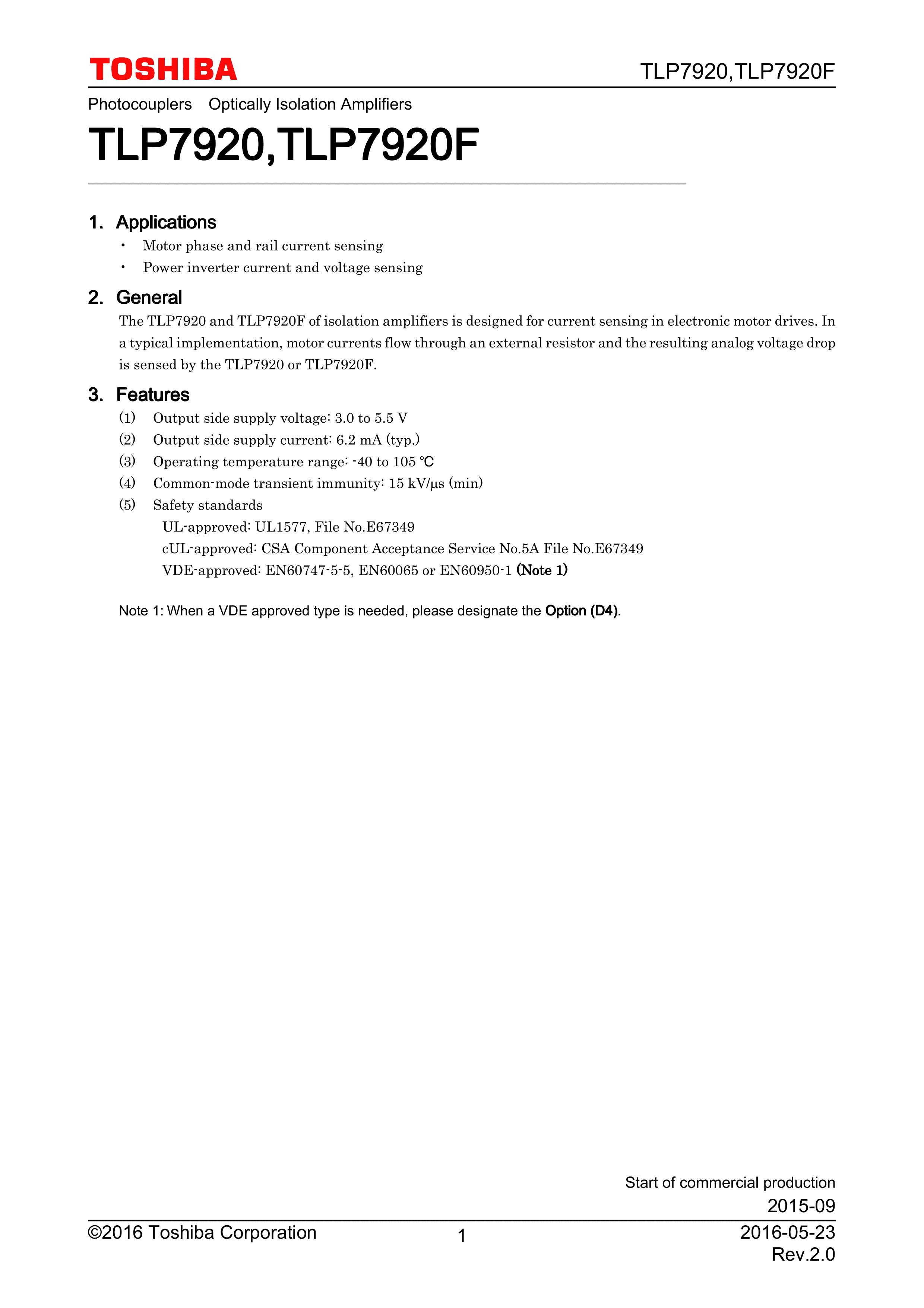 TLP7920(D4-TP1F数据手册SMD-8封装TOSHIBA(东芝)PDF规格书,中英文下载