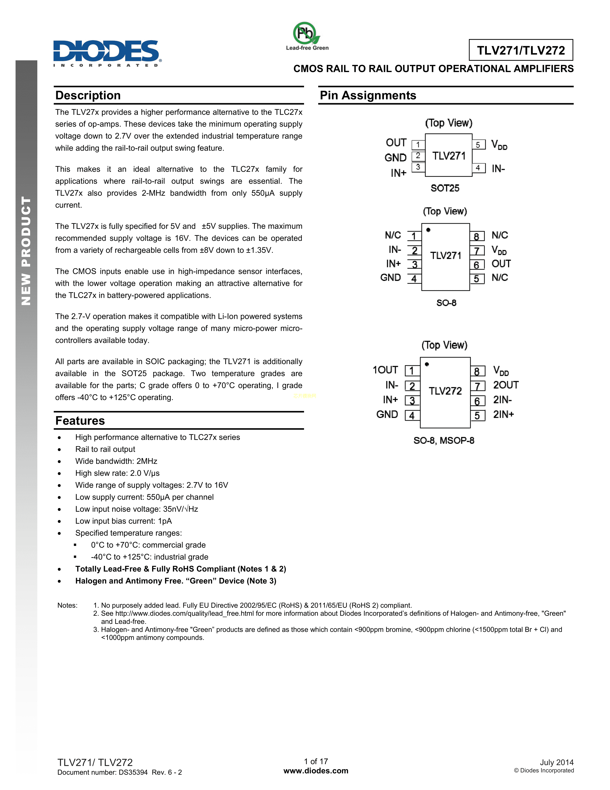 TLV272CS-13数据手册SO-8封装DIODES(美台)PDF规格书,中英文下载