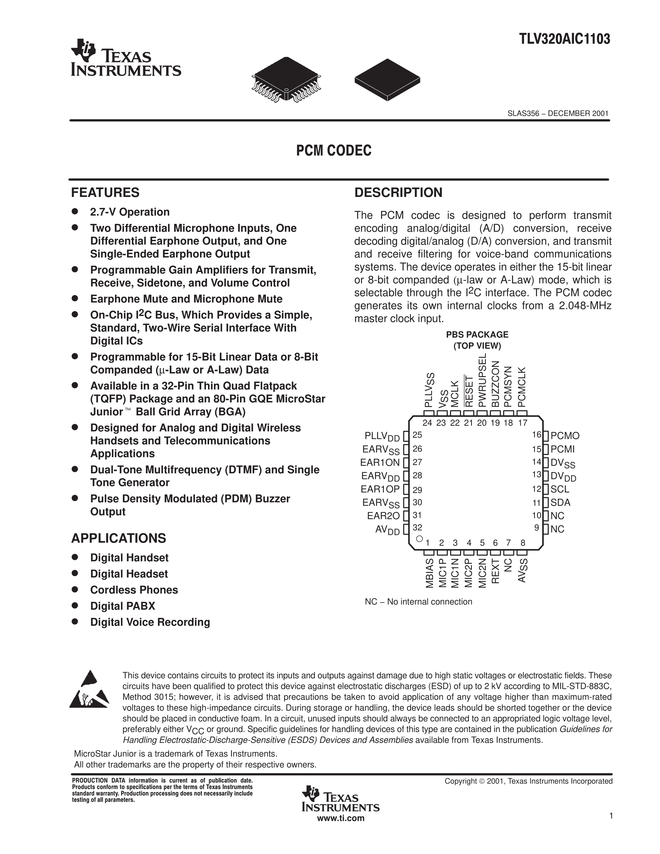 TLV320AIC1103PBSR数据手册TQFP-32封装TI(德州仪器)PDF规格书,中英文下载