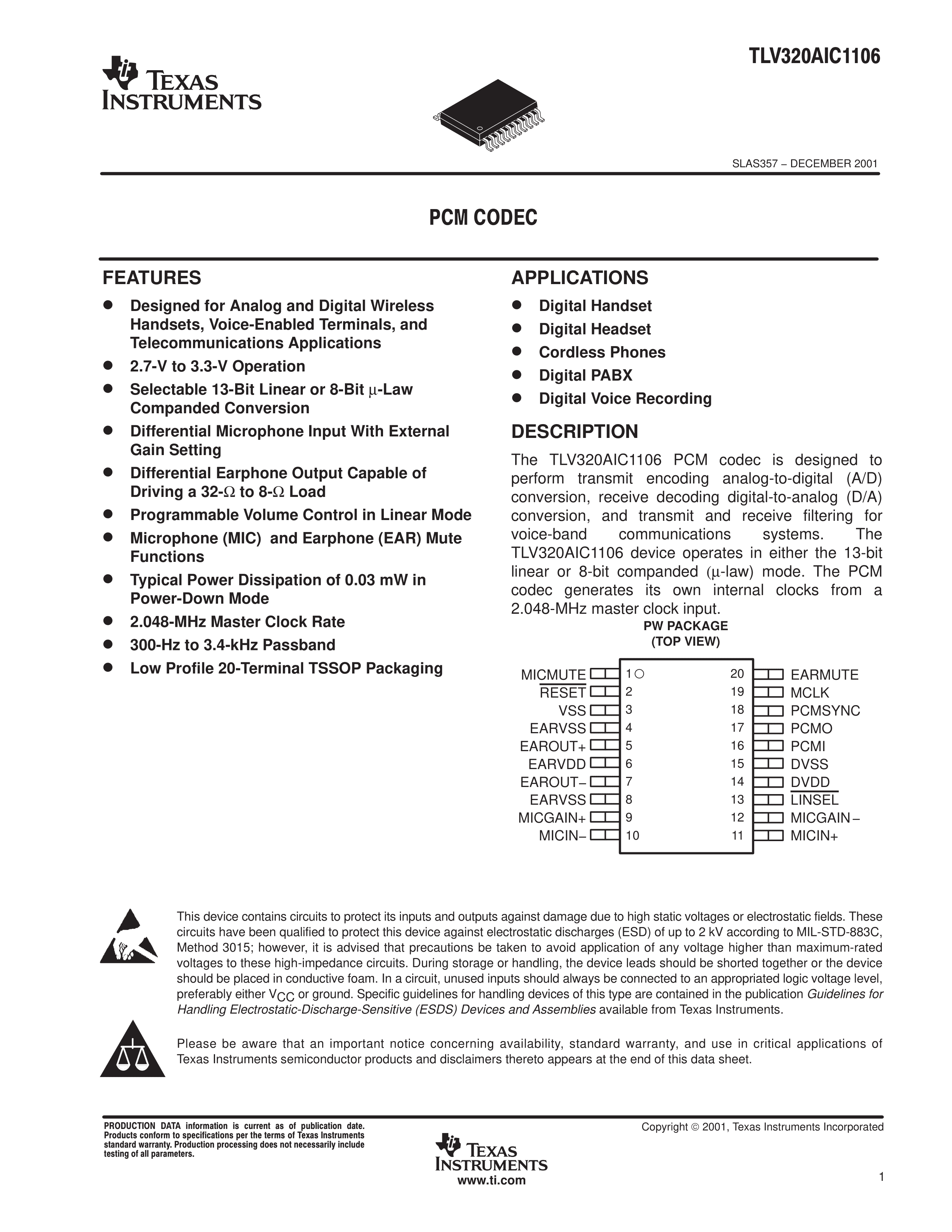 TLV320AIC1106PWR数据手册TSSOP-20封装TI(德州仪器)PDF规格书,中英文下载
