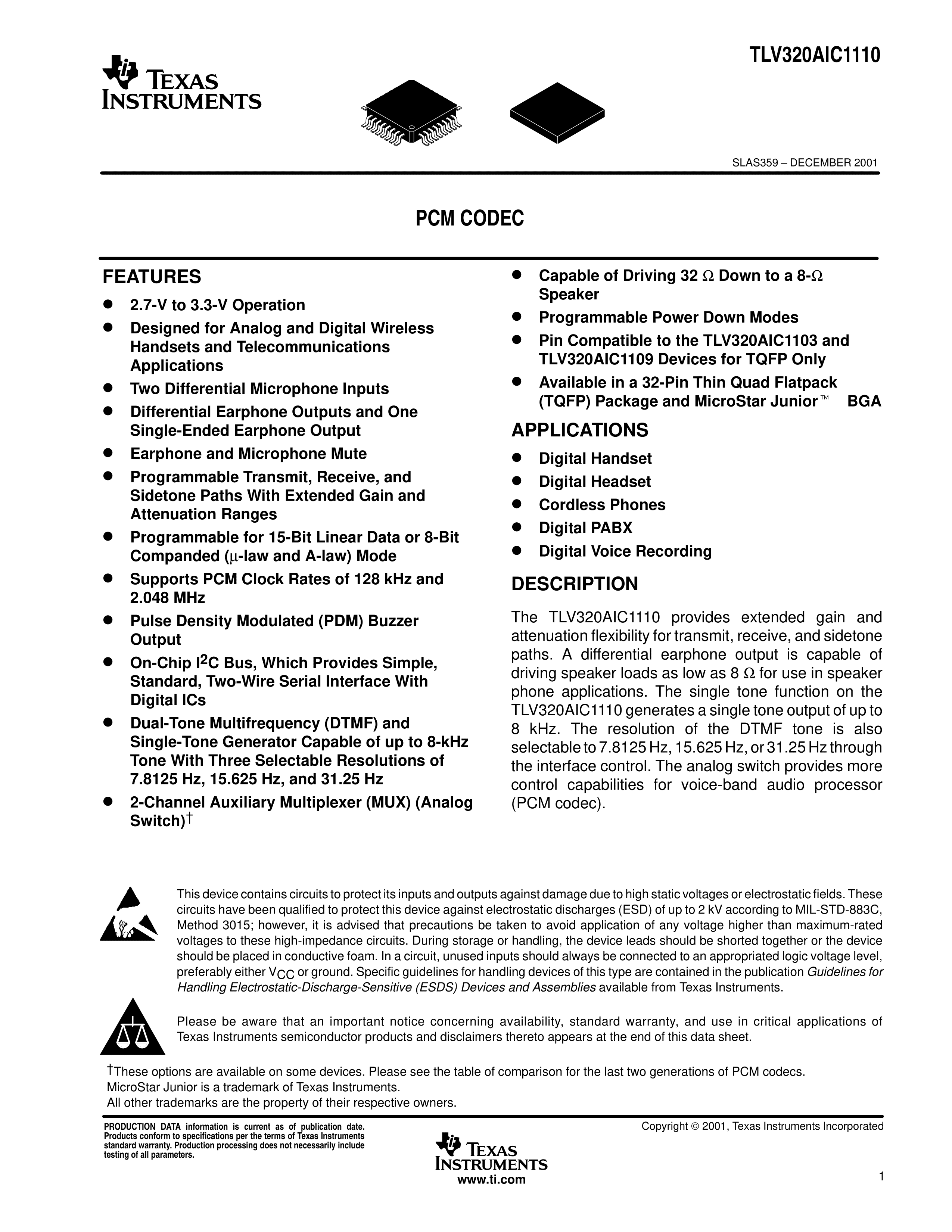 TLV320AIC1110PBS数据手册TQFP-32封装TI(德州仪器)PDF规格书,中英文下载