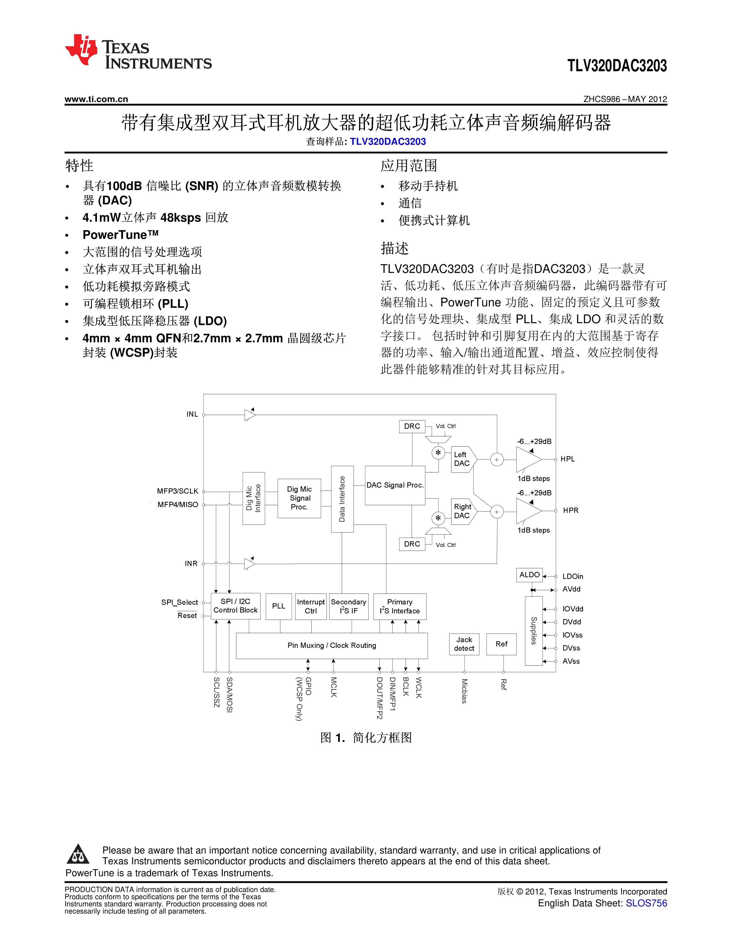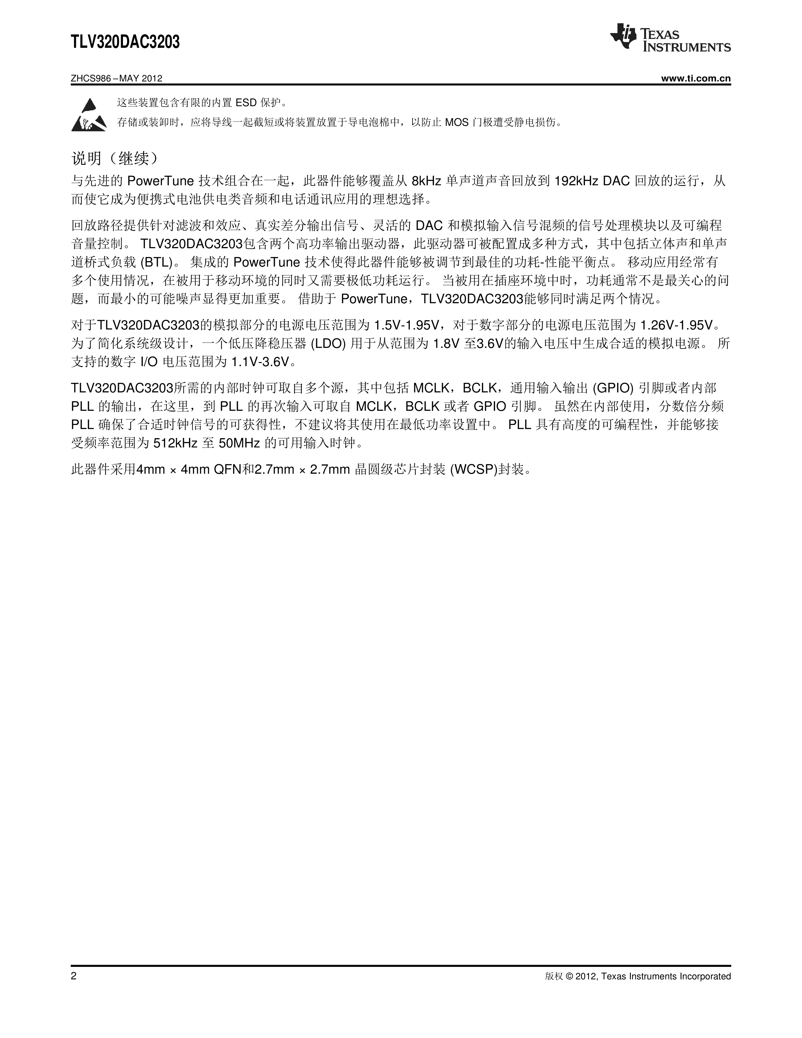 TLV320DAC3203IYZKT数据手册DSBGA-25封装TI(德州仪器)PDF规格书,中英文