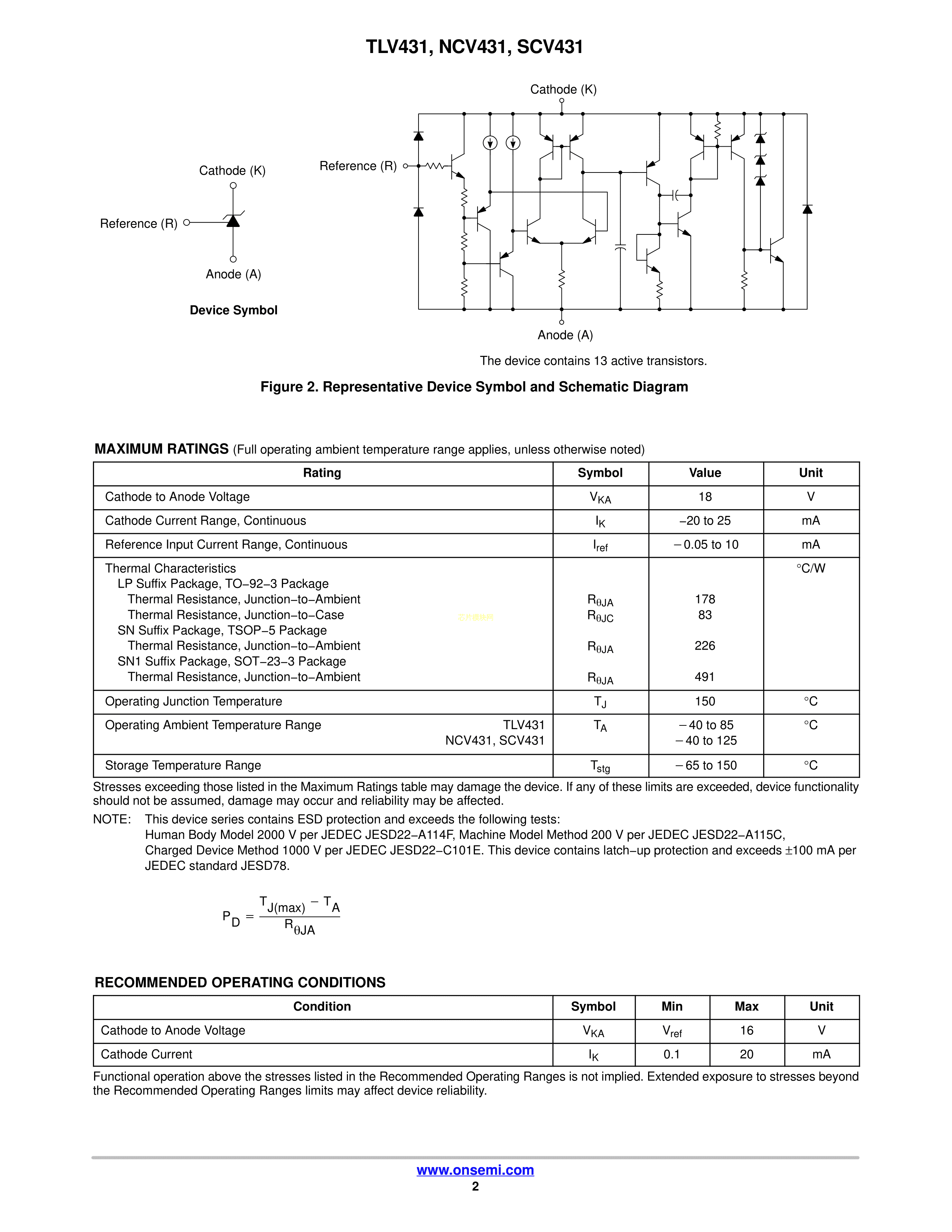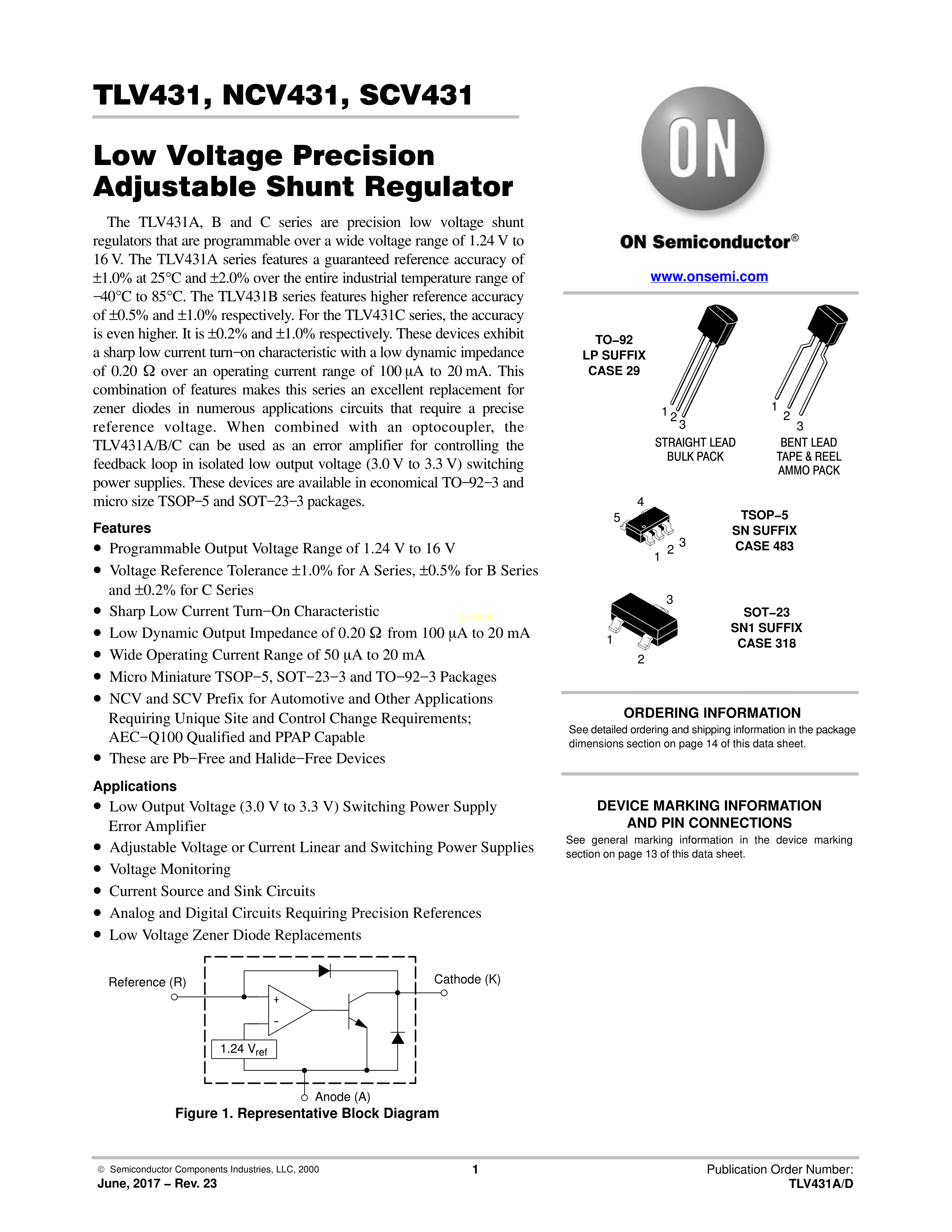 TLV431BSN1T1G数据手册SOT-23(SOT-23-3)封装onsemi(安森美)PDF规
