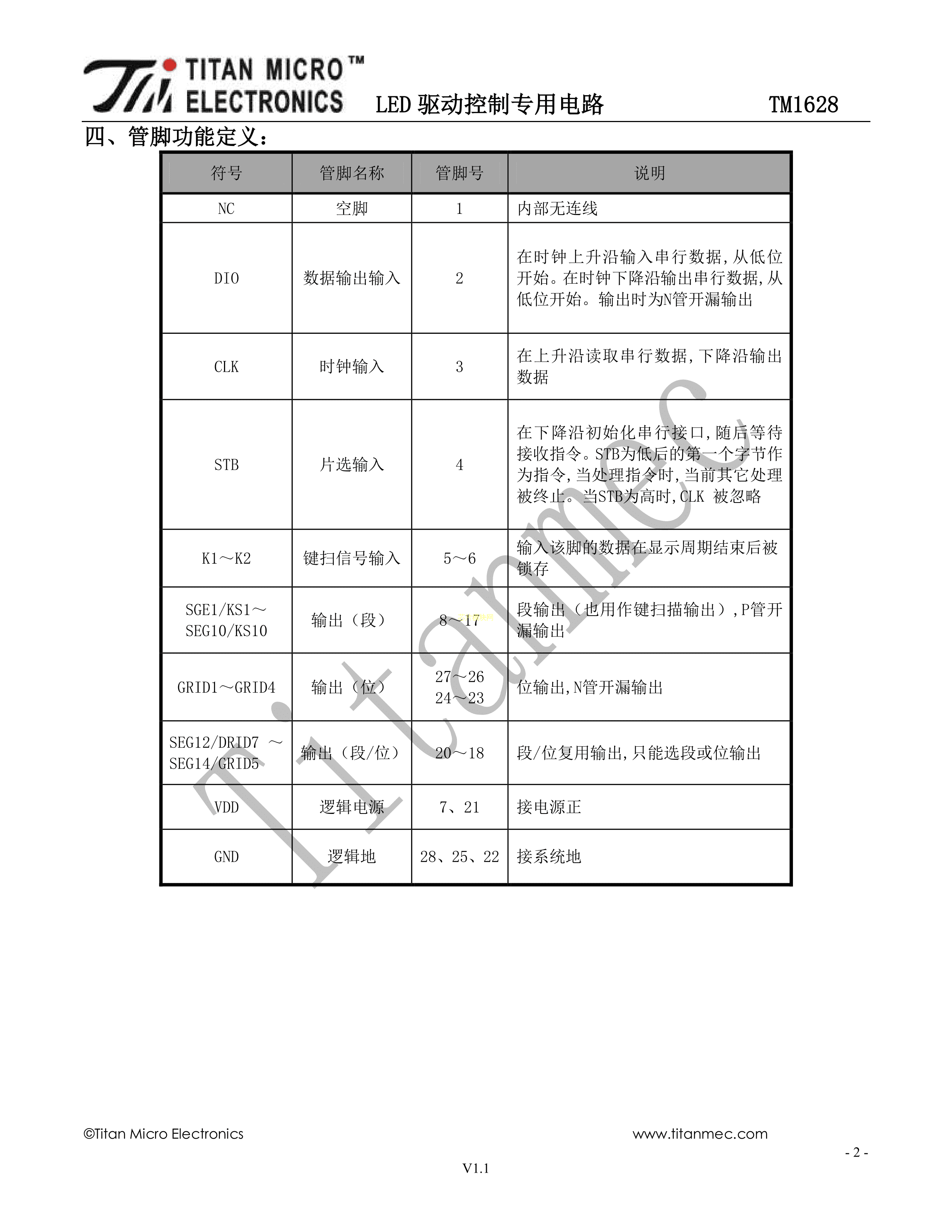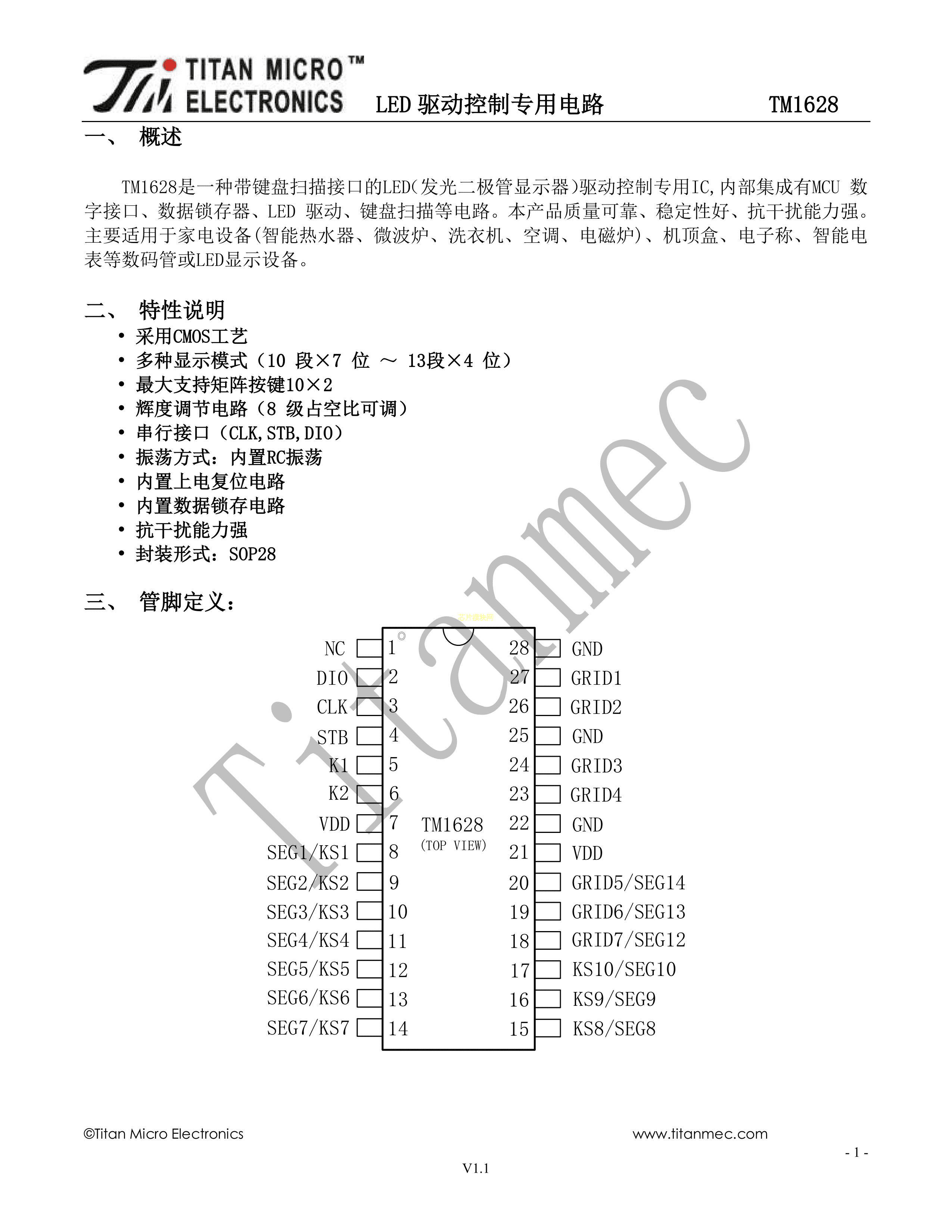 TM1628数据手册SOP-28_300mil封装TM(天微)PDF规格书,中英文下载