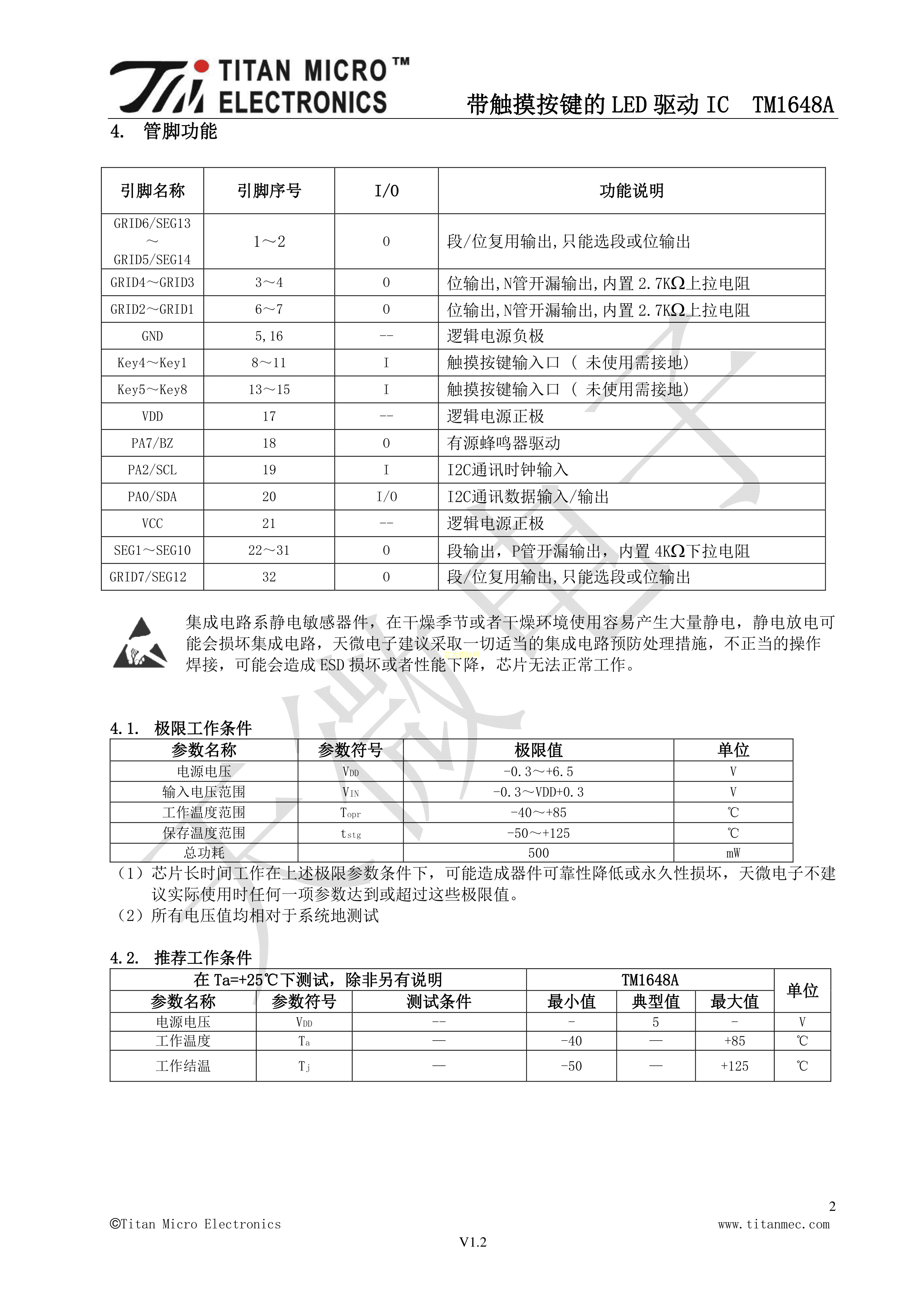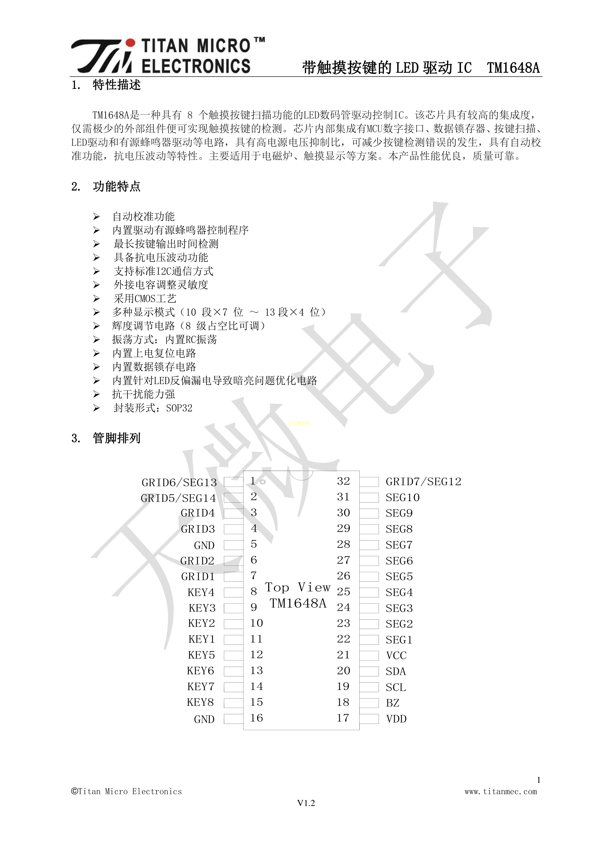 TM1648A数据手册SOP-32封装TM(天微)PDF规格书,中英文下载