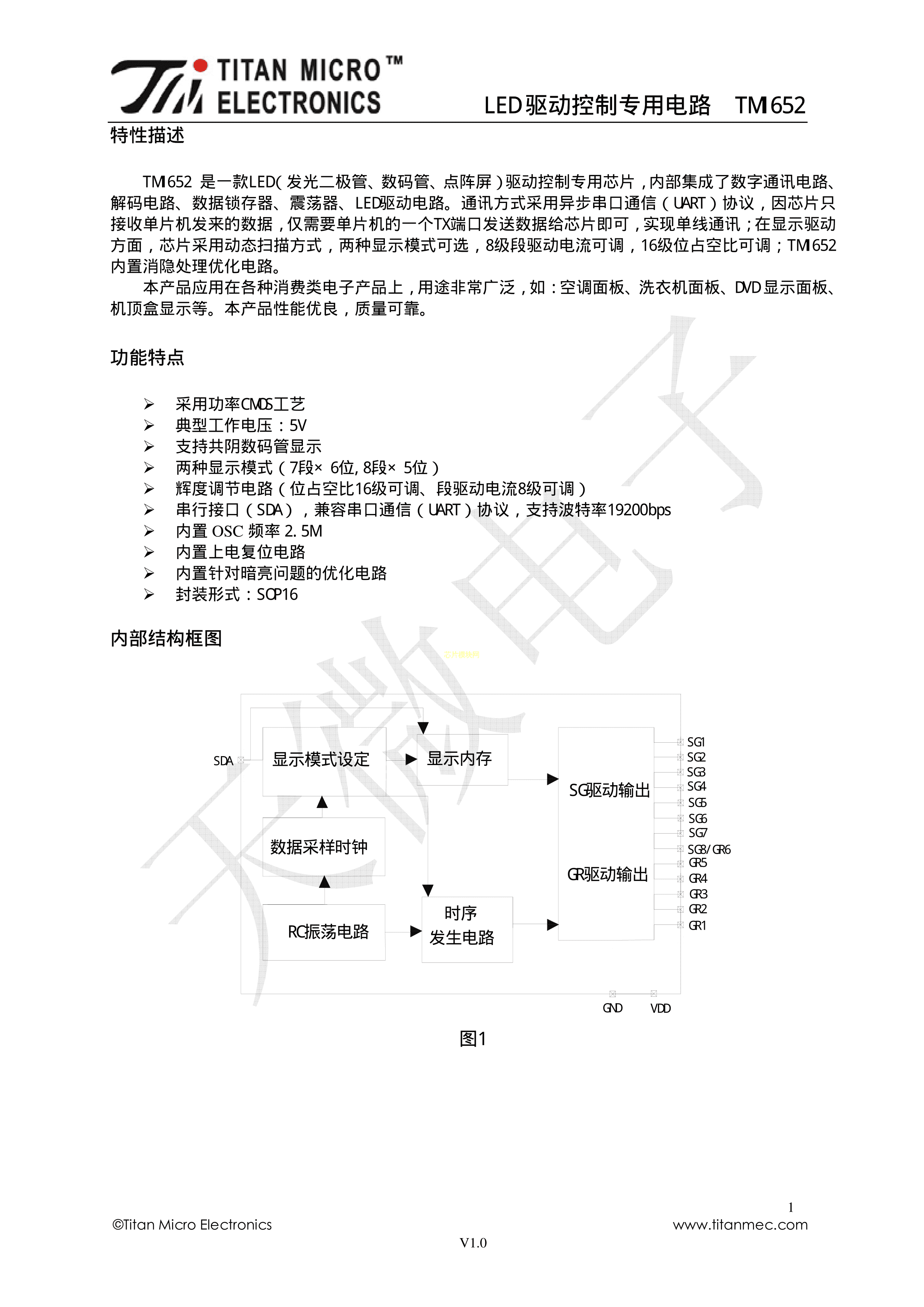 TM1652数据手册SOP-16_150mil封装TM(天微)PDF规格书,中英文下载