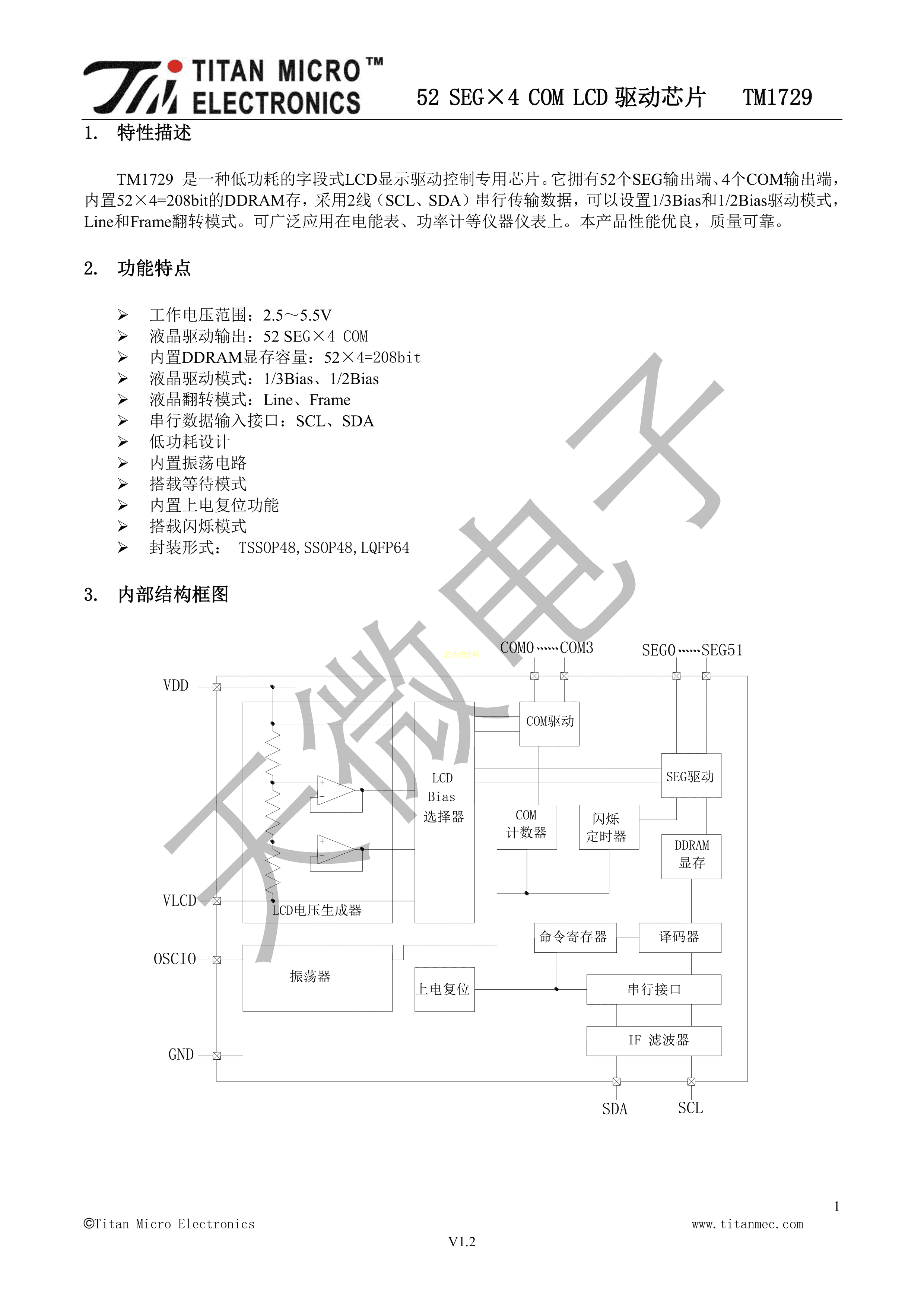 TM1729数据手册LQFP-64封装TM(天微)PDF规格书,中英文下载