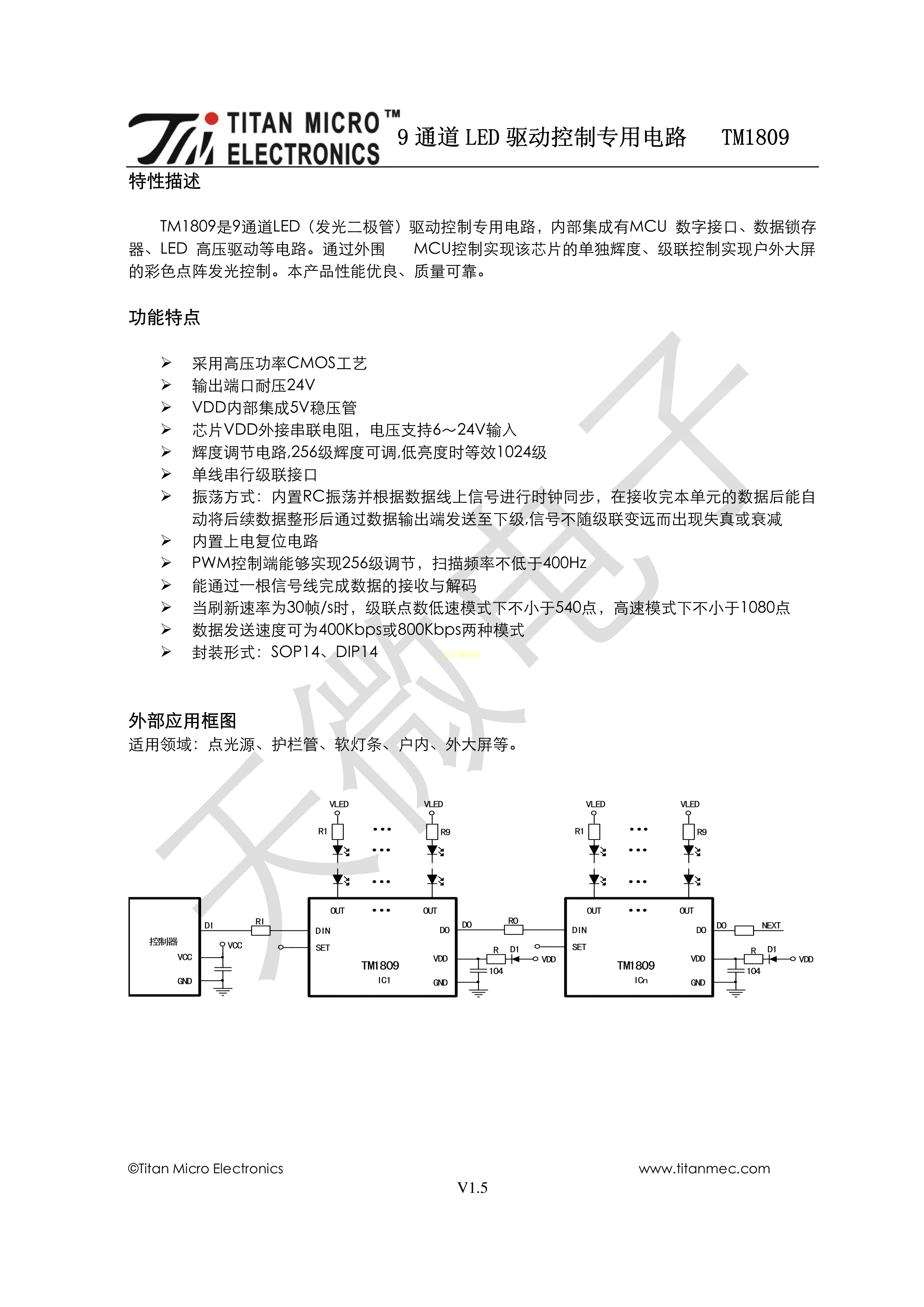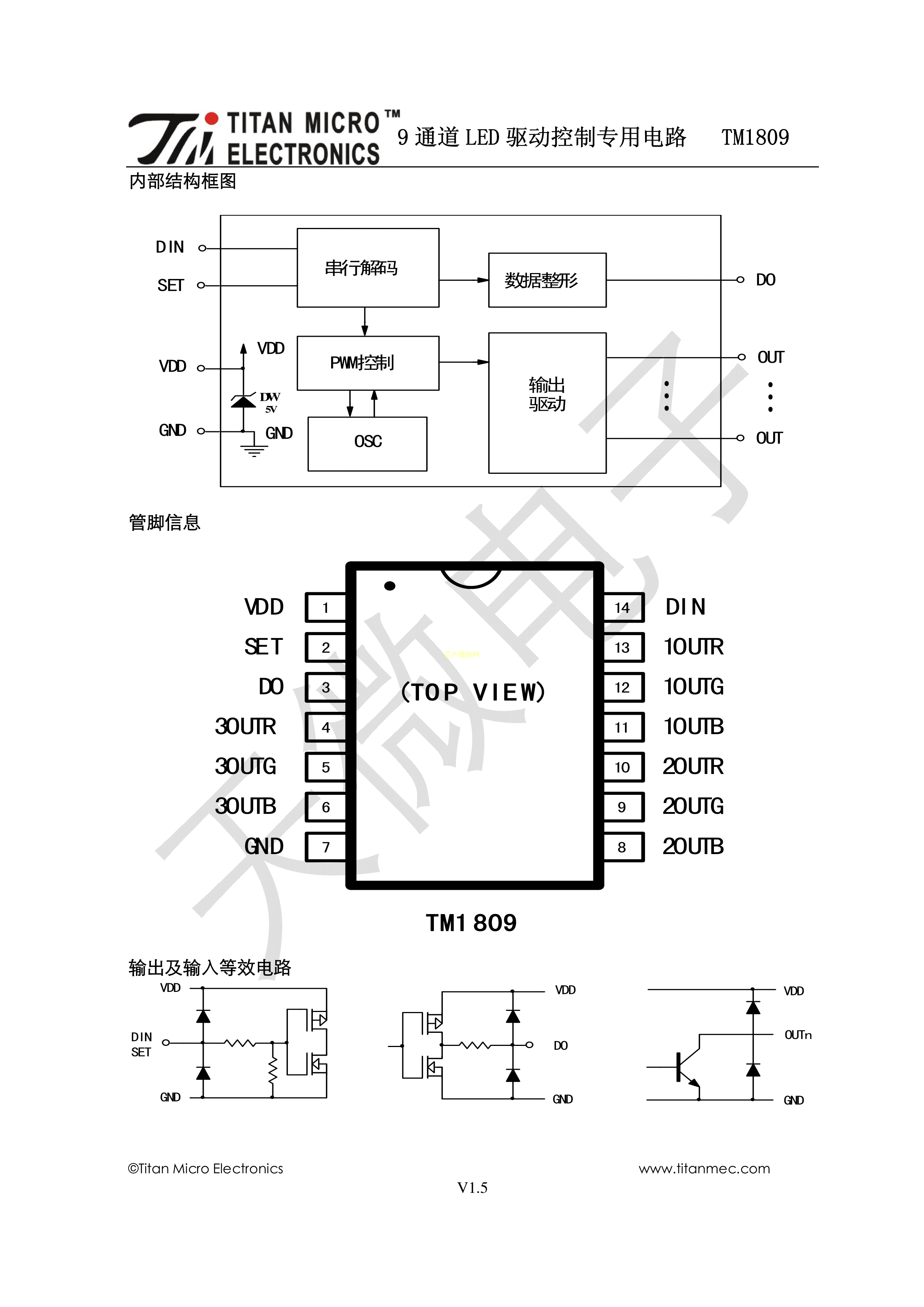 TM1809数据手册SOP-14_150mil封装TM(天微)PDF规格书,中英文下载
