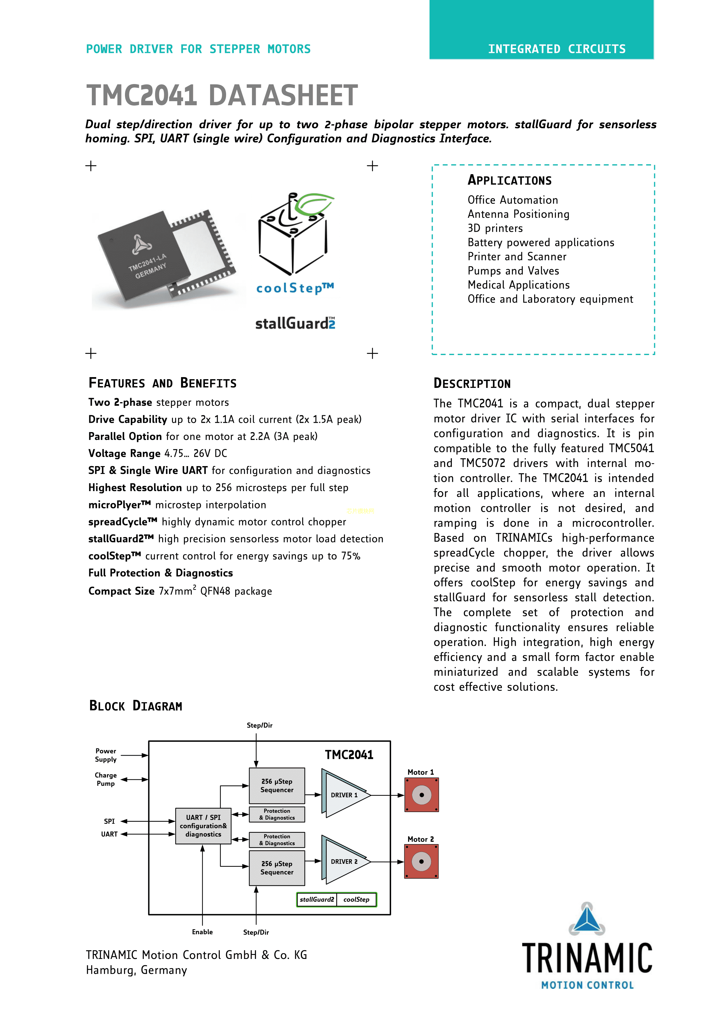 TMC2041-LA-T数据手册QFN-48(7x7)封装TRINAMICPDF规格书,中英文下载