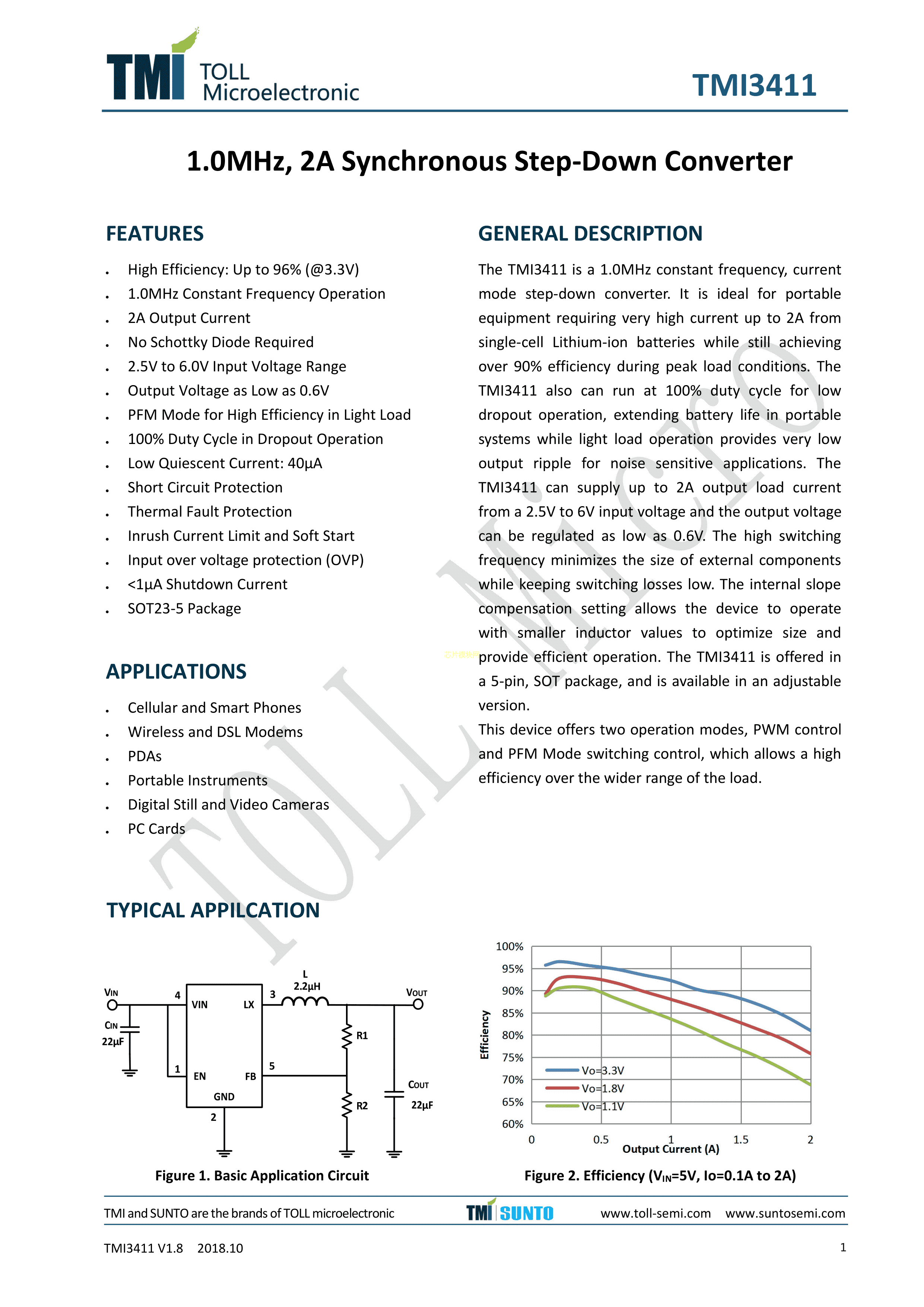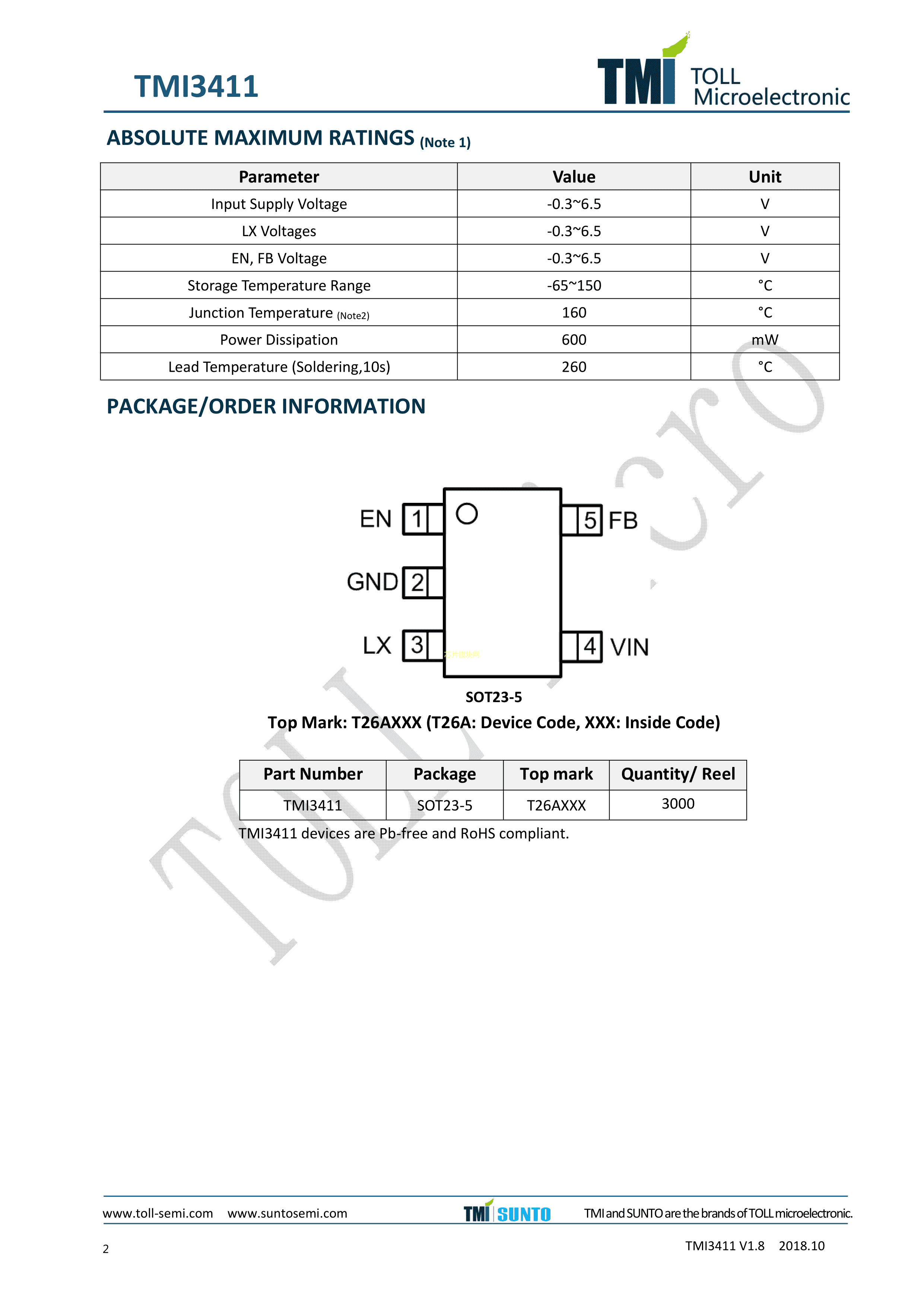 TMI3411数据手册SOT-23-5封装TMI(拓尔微)PDF规格书,中英文下载