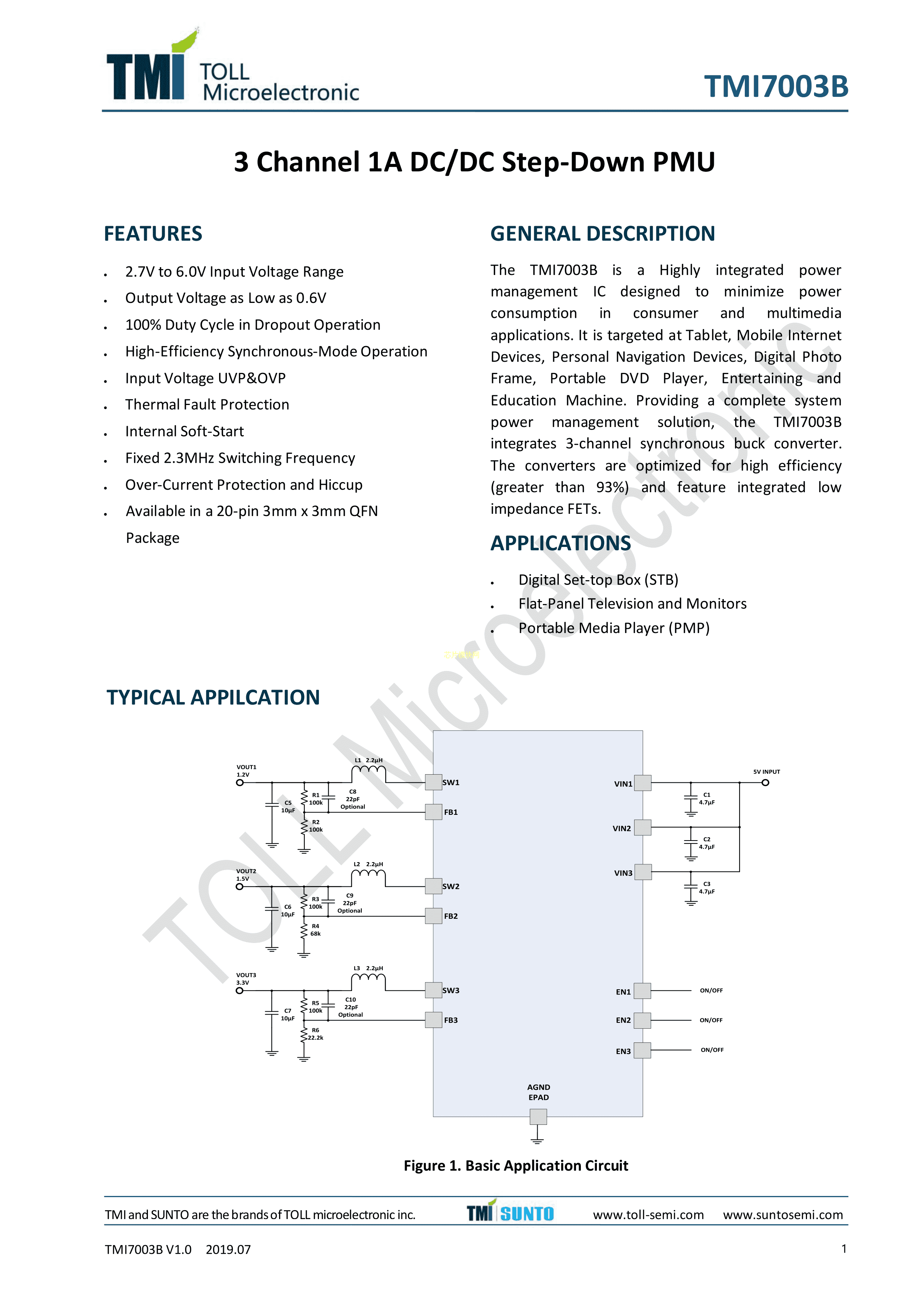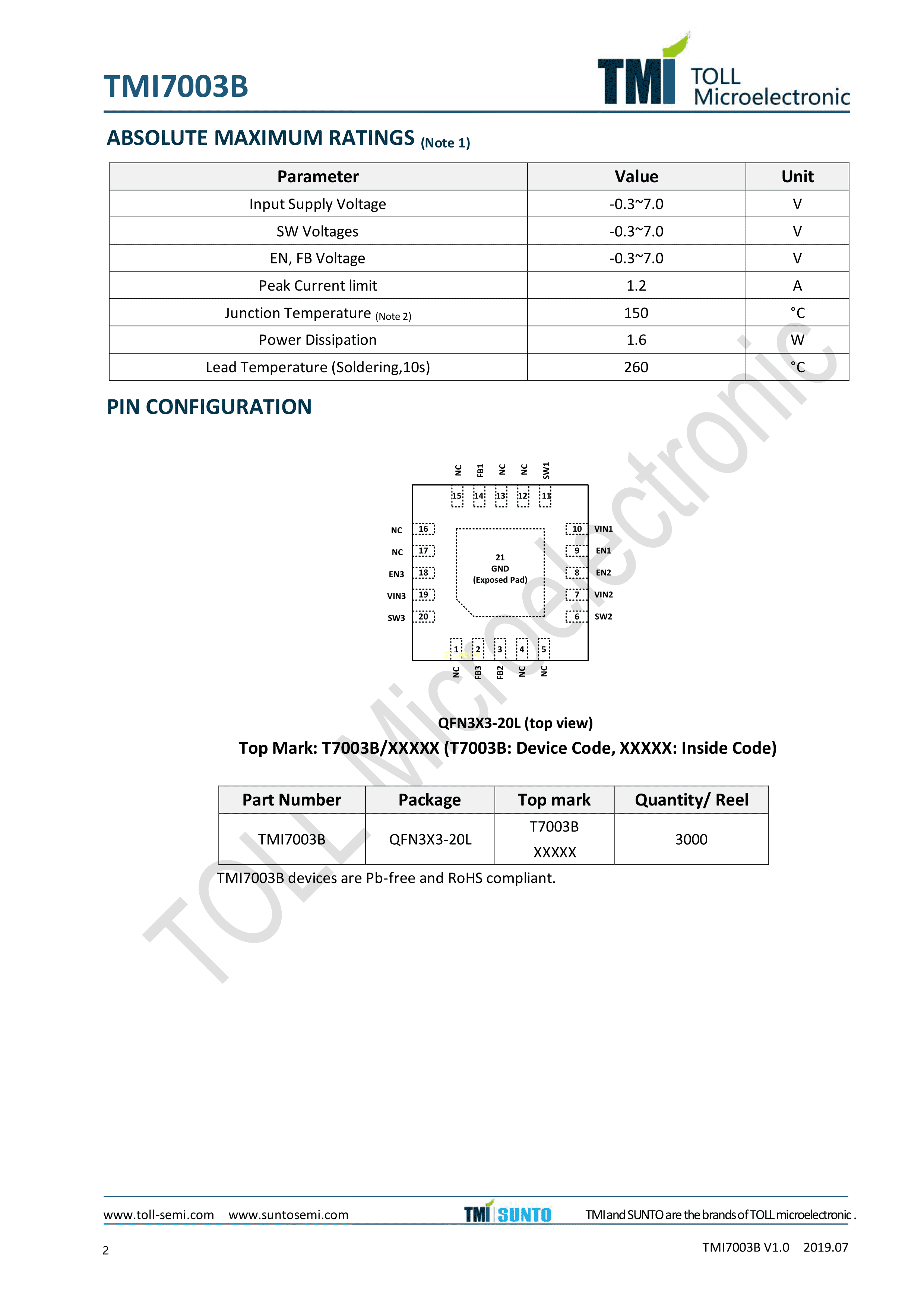 TMI7003B数据手册QFN3X3-20L封装TMI(拓尔微)PDF规格书,中英文下载