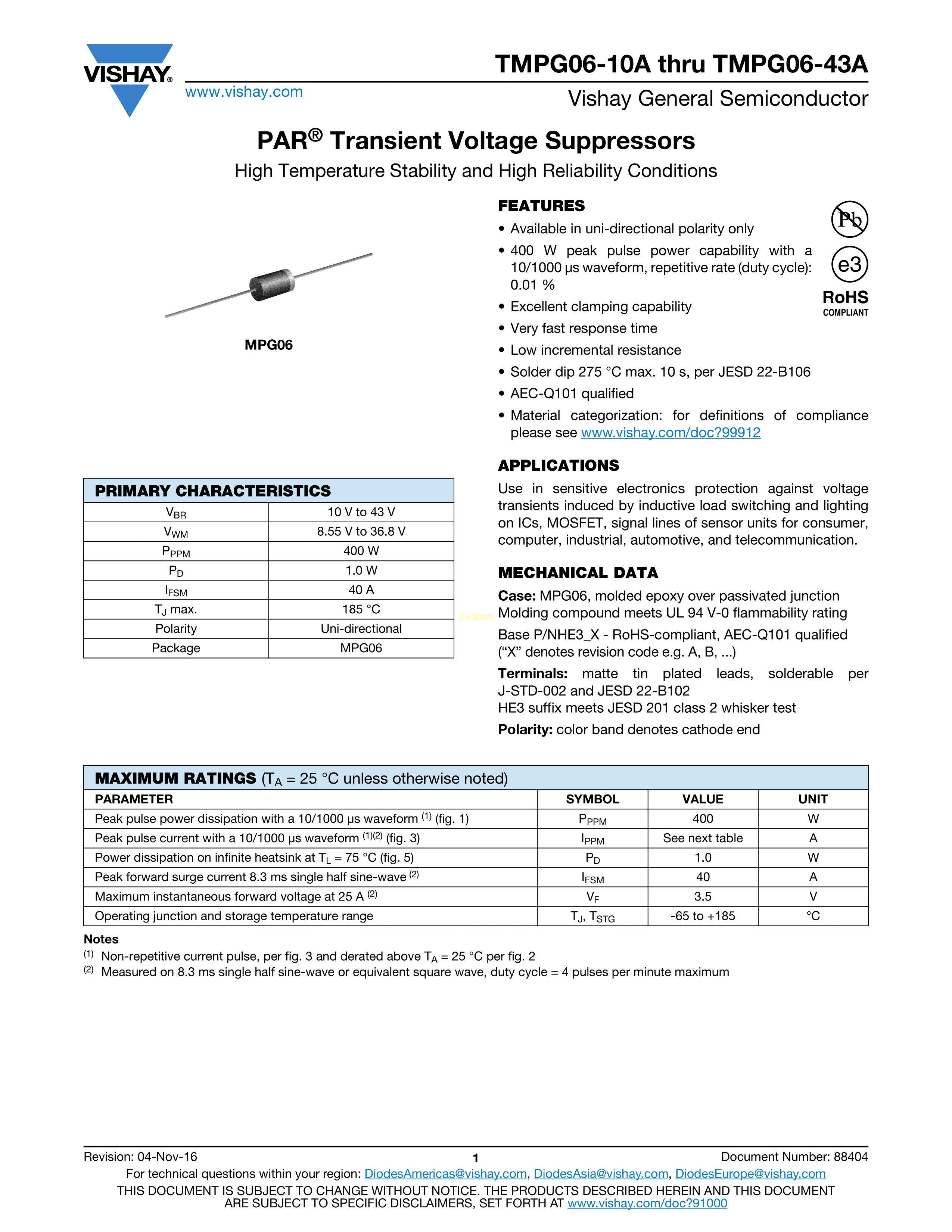 TMPG06-36AHE3J_A-D数据手册MPG06封装VISHAY(威世)PDF规格书,中英文下