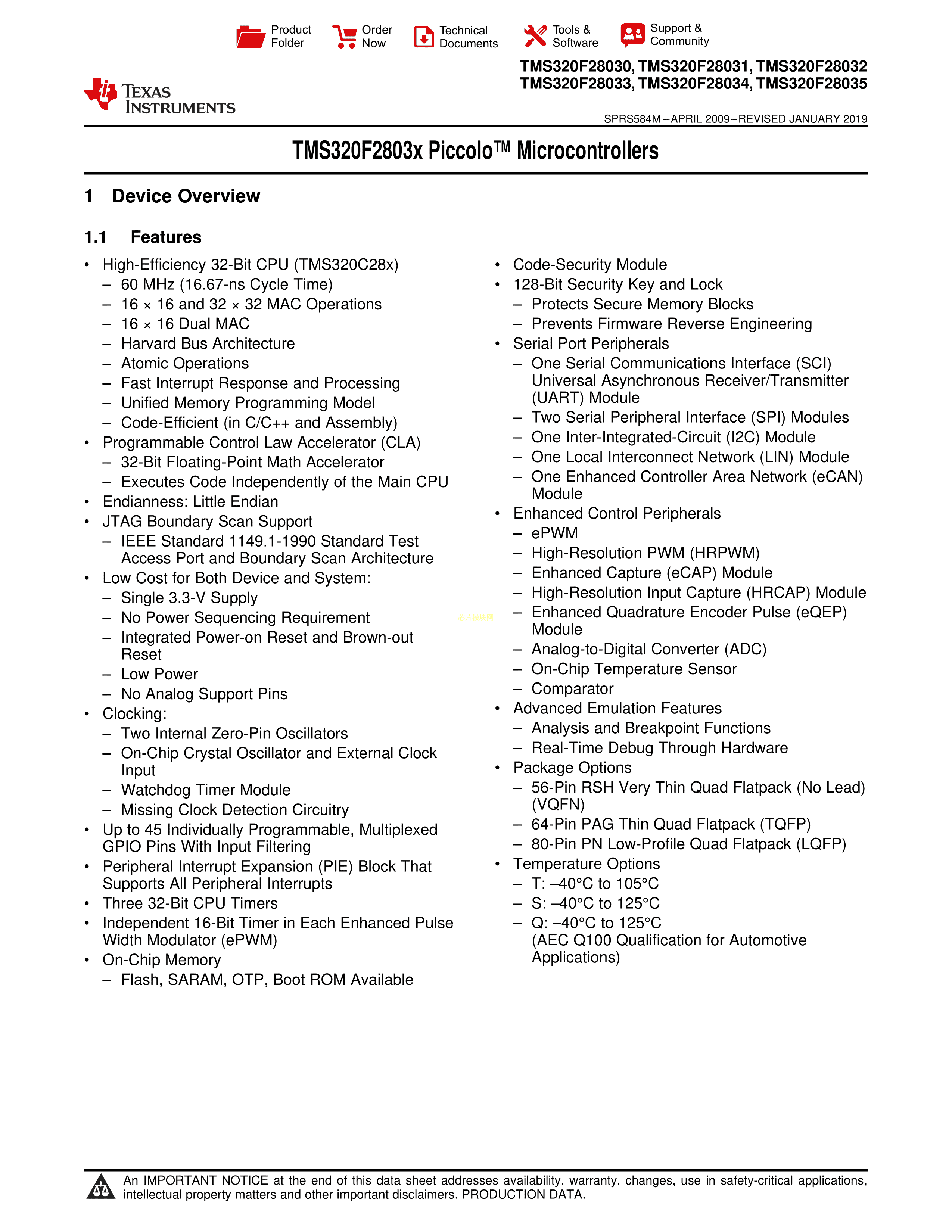 TMS320F28032PAGT数据手册TQFP-64封装TI(德州仪器)PDF规格书,中英文下载