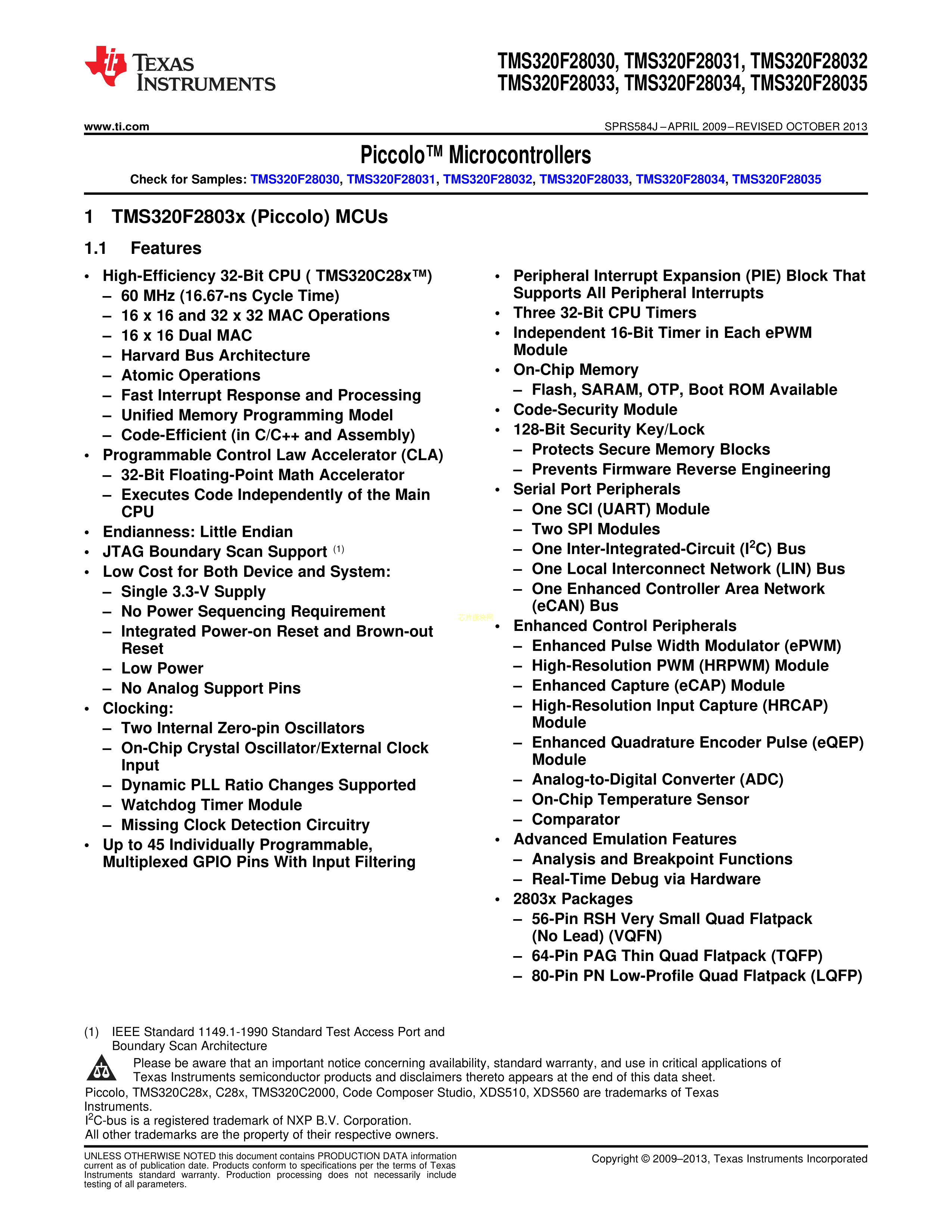 TMS320F28035PAGT数据手册TQFP-64_10x10x05P封装TI(德州仪器)PDF
