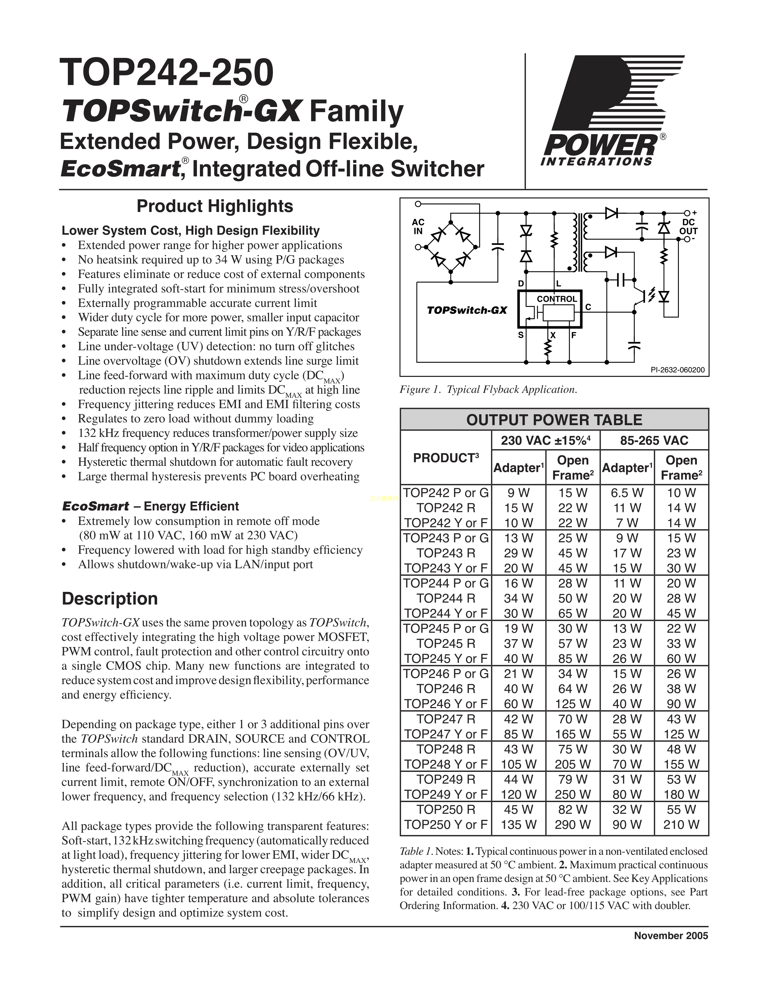 TOP243YN数据手册TO-220-7C封装Power Integrations(帕沃英蒂格盛)P