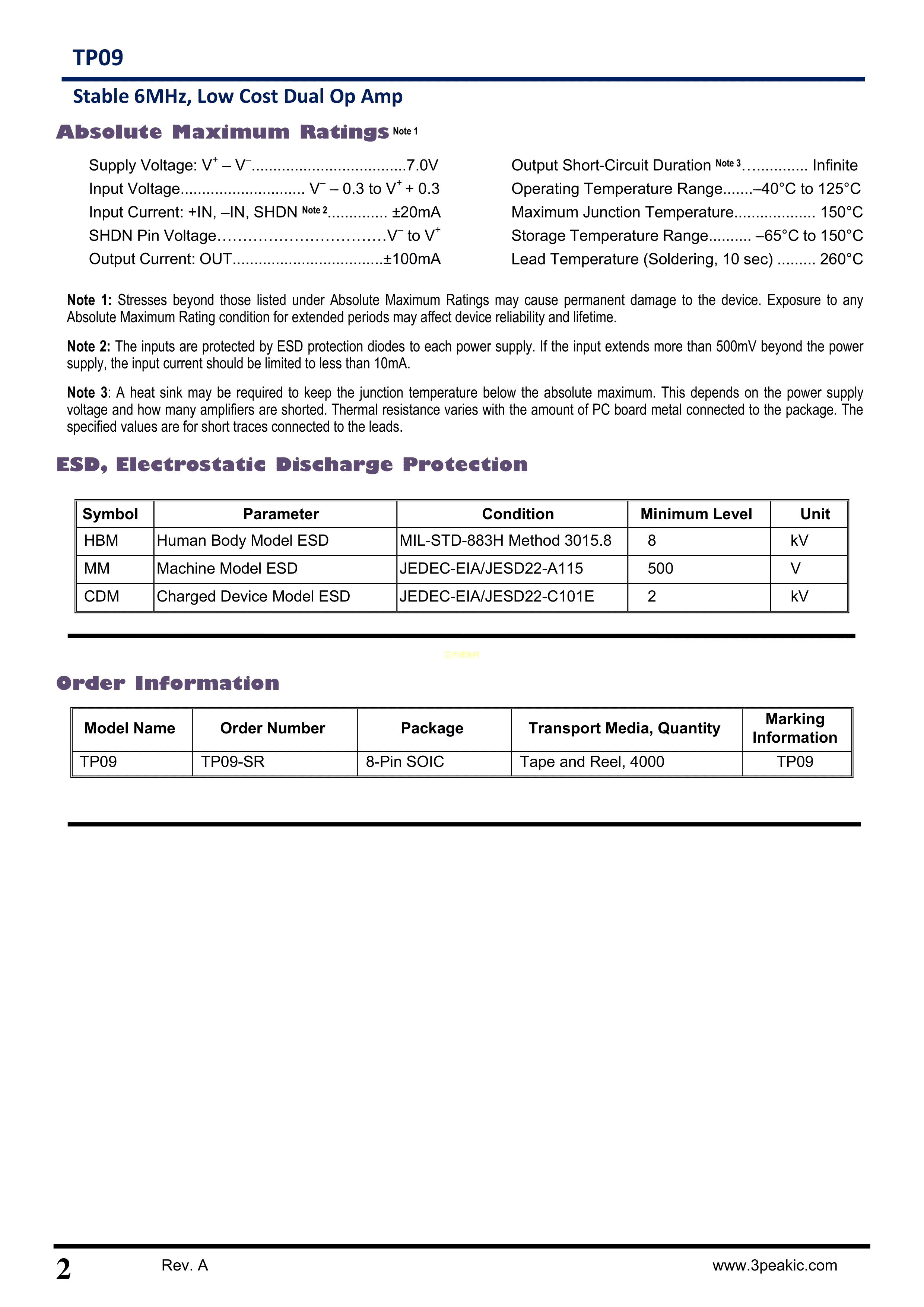TP09-SR数据手册SOP-8_150mil封装3PEAKPDF规格书,中英文下载