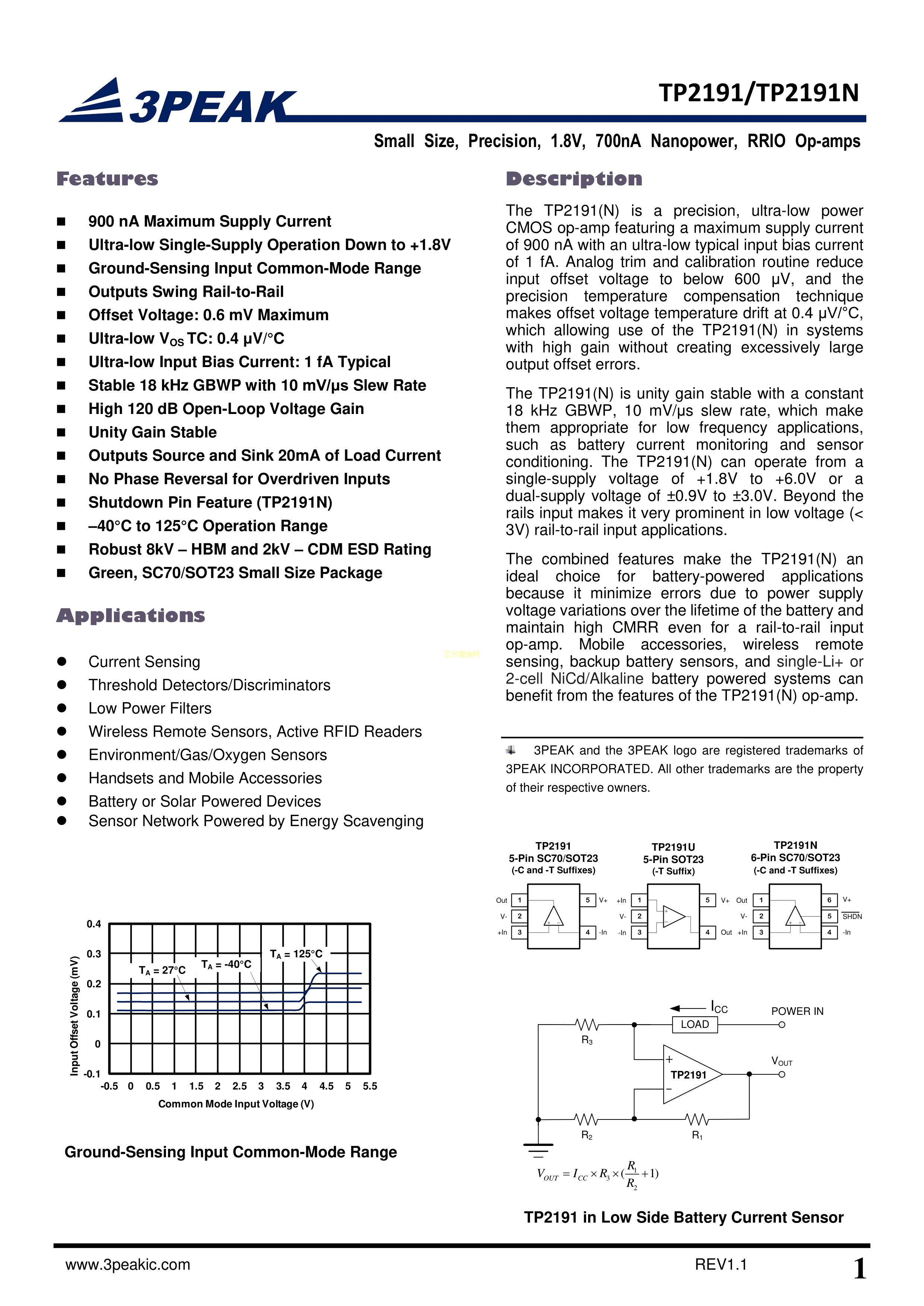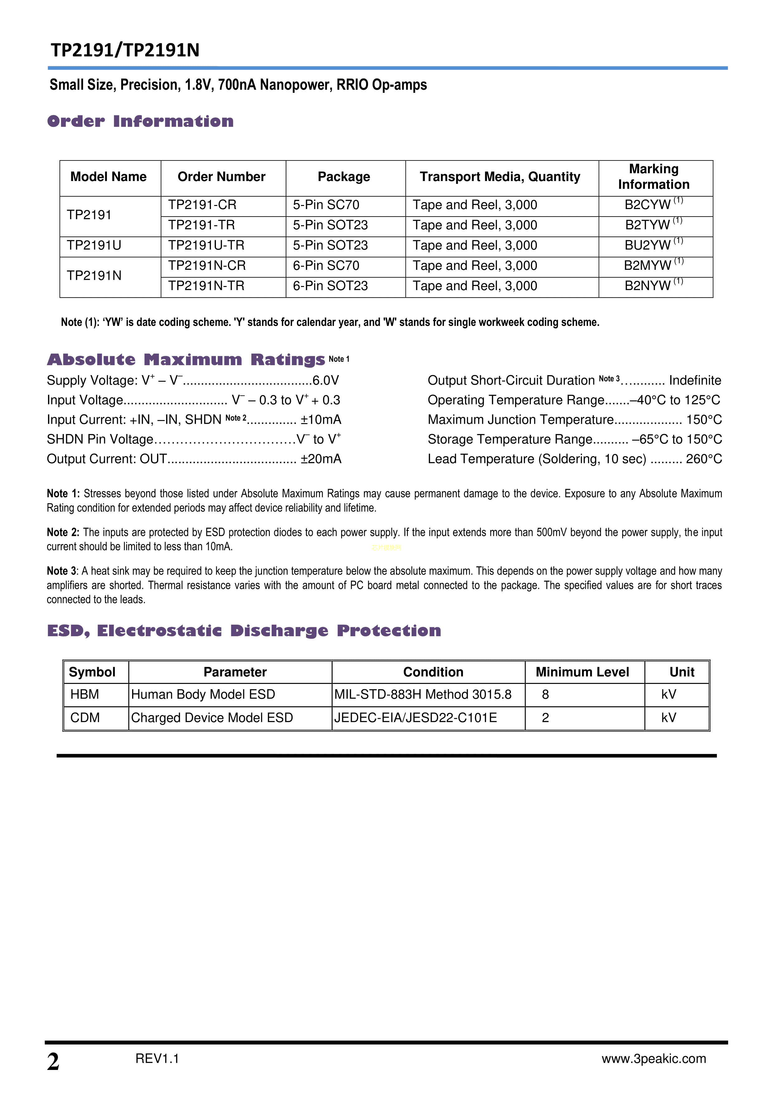 TP2191-TR数据手册SOT23-5封装3PEAKPDF规格书,中英文下载