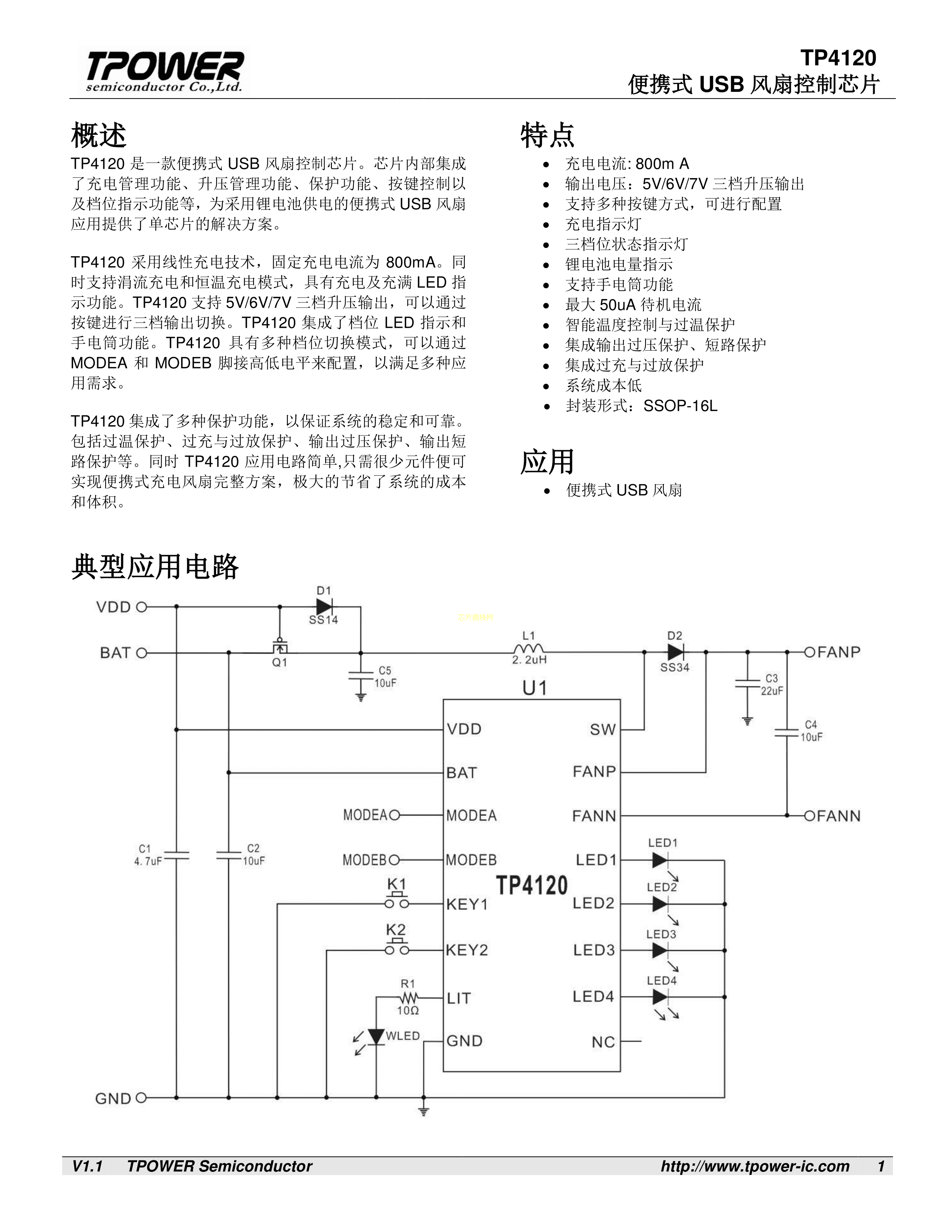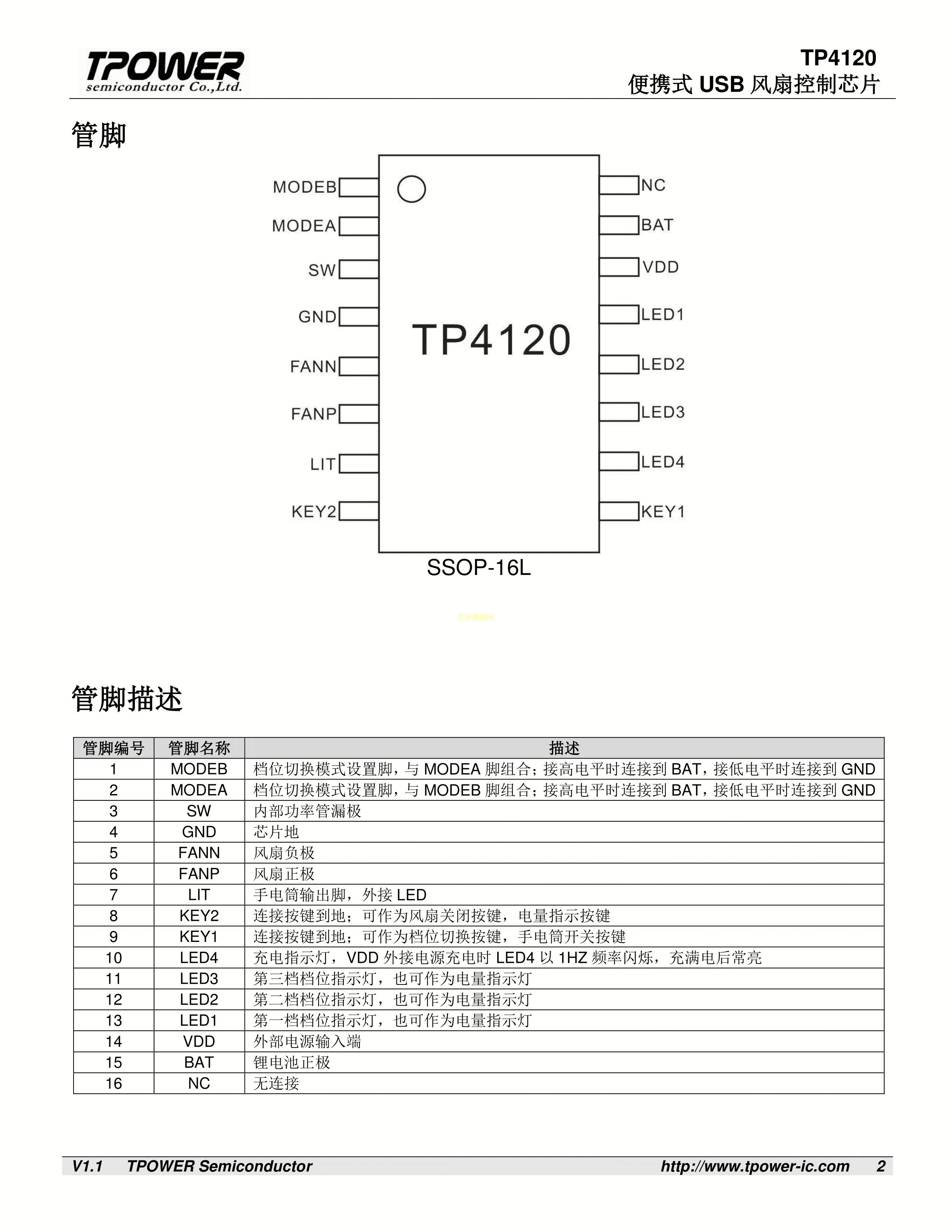 TP4120数据手册SSOP-16封装TPOWER(天源)PDF规格书,中英文下载