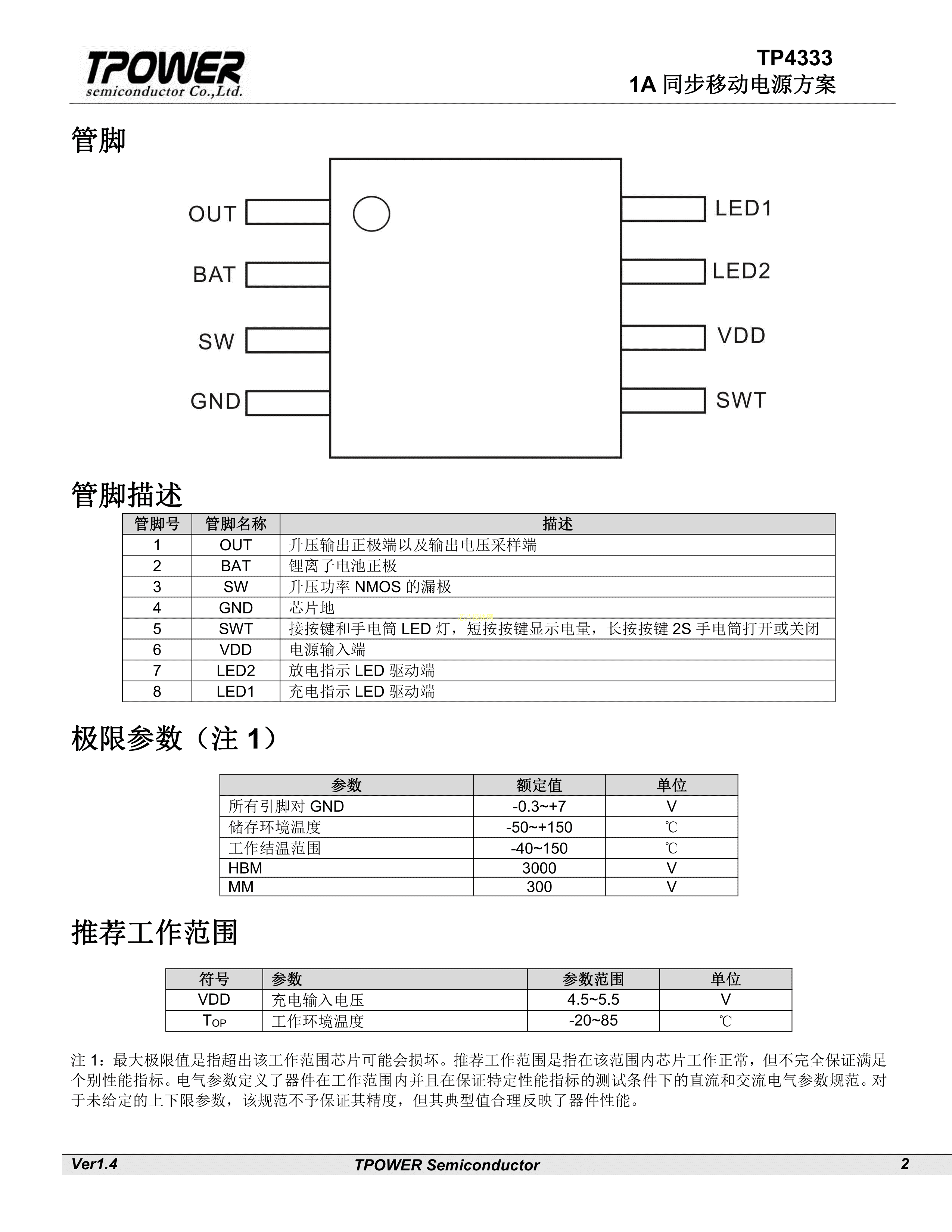 TP4333数据手册SOP-8封装TPOWER(天源)PDF规格书,中英文下载