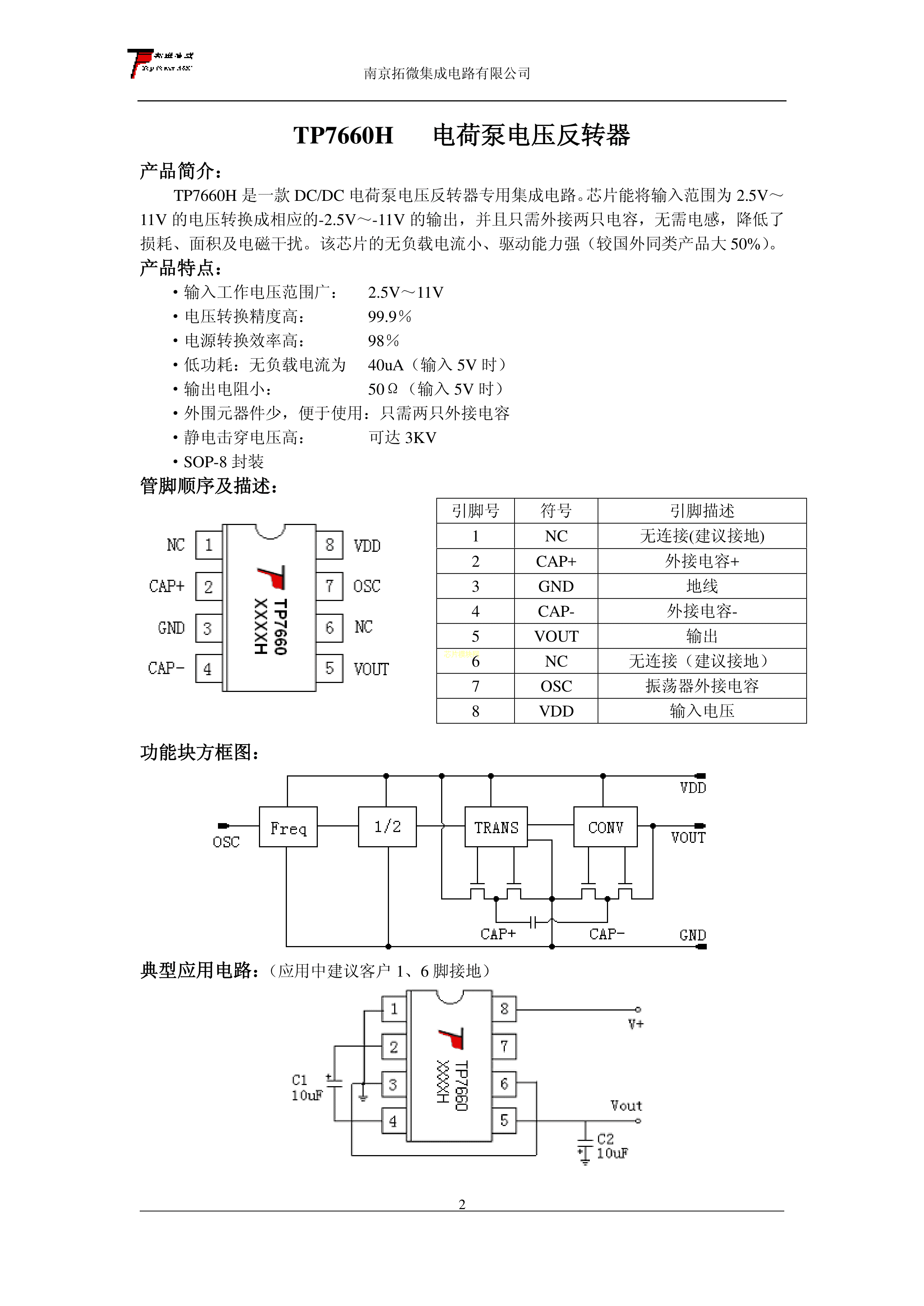 TP7660H数据手册SOIC-8_150mil封装TOPPOWER(南京拓微)PDF规格书,中英文