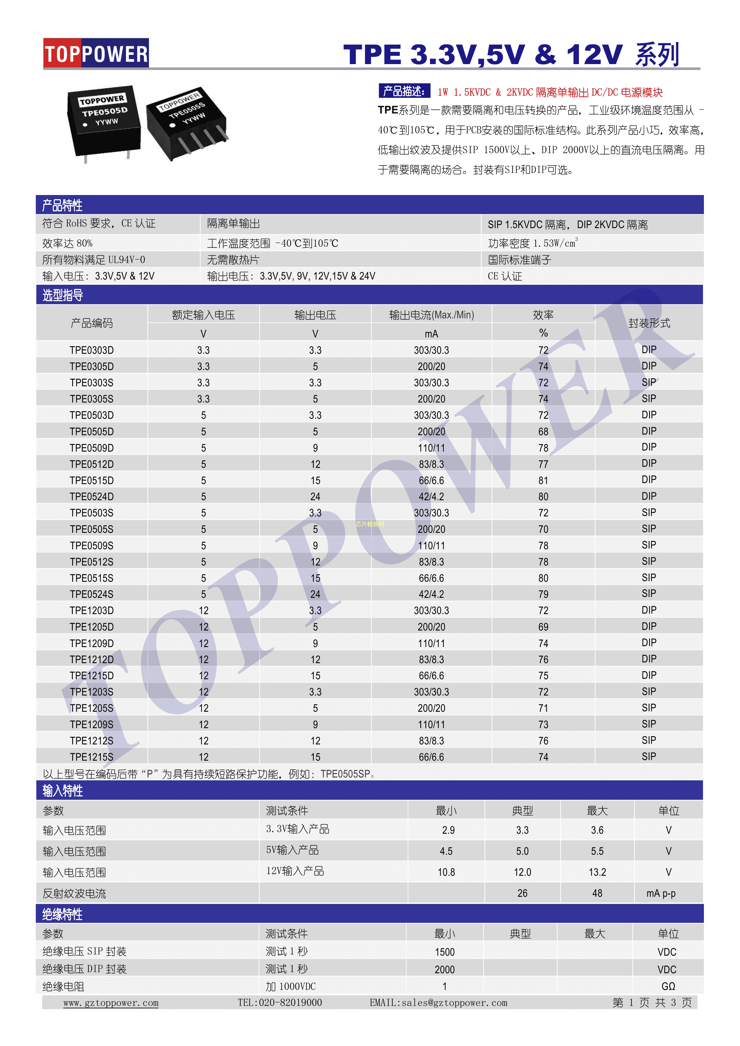 TPE1212D数据手册插件封装TOPPOWER(顶源)PDF规格书,中英文下载