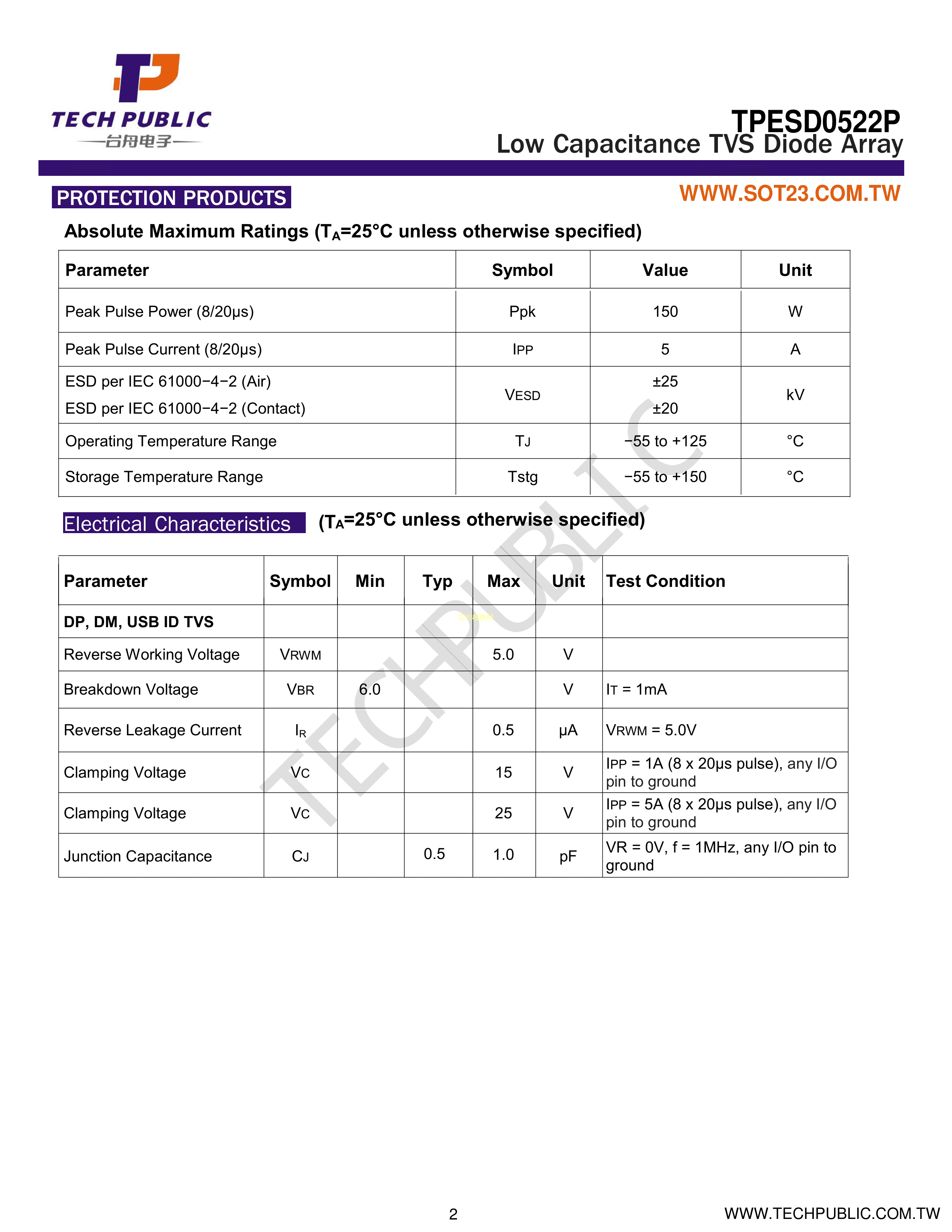 TPESD0522P数据手册DFN1610-6封装TECHPUBLIC(台舟)PDF规格书,中英文下载