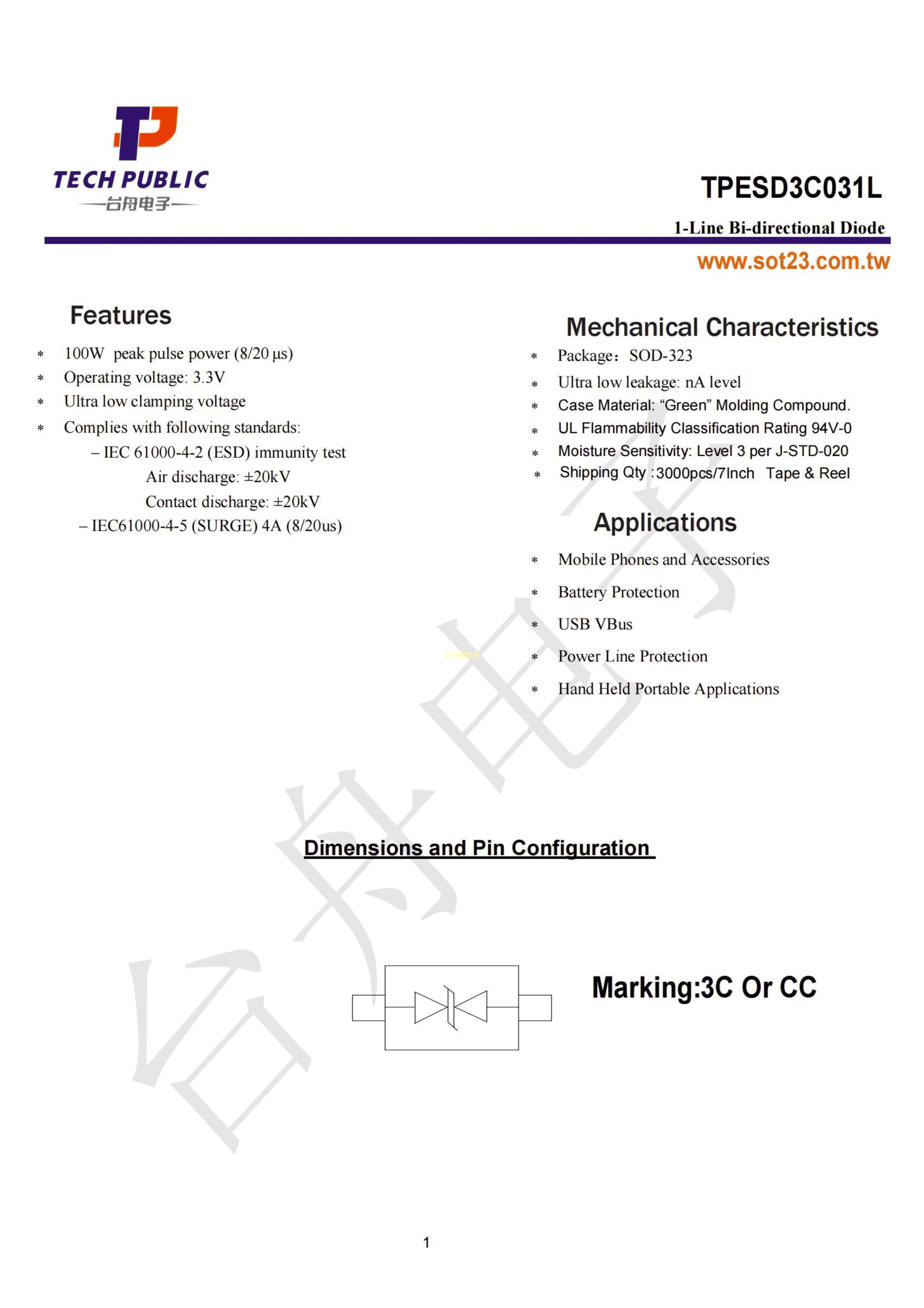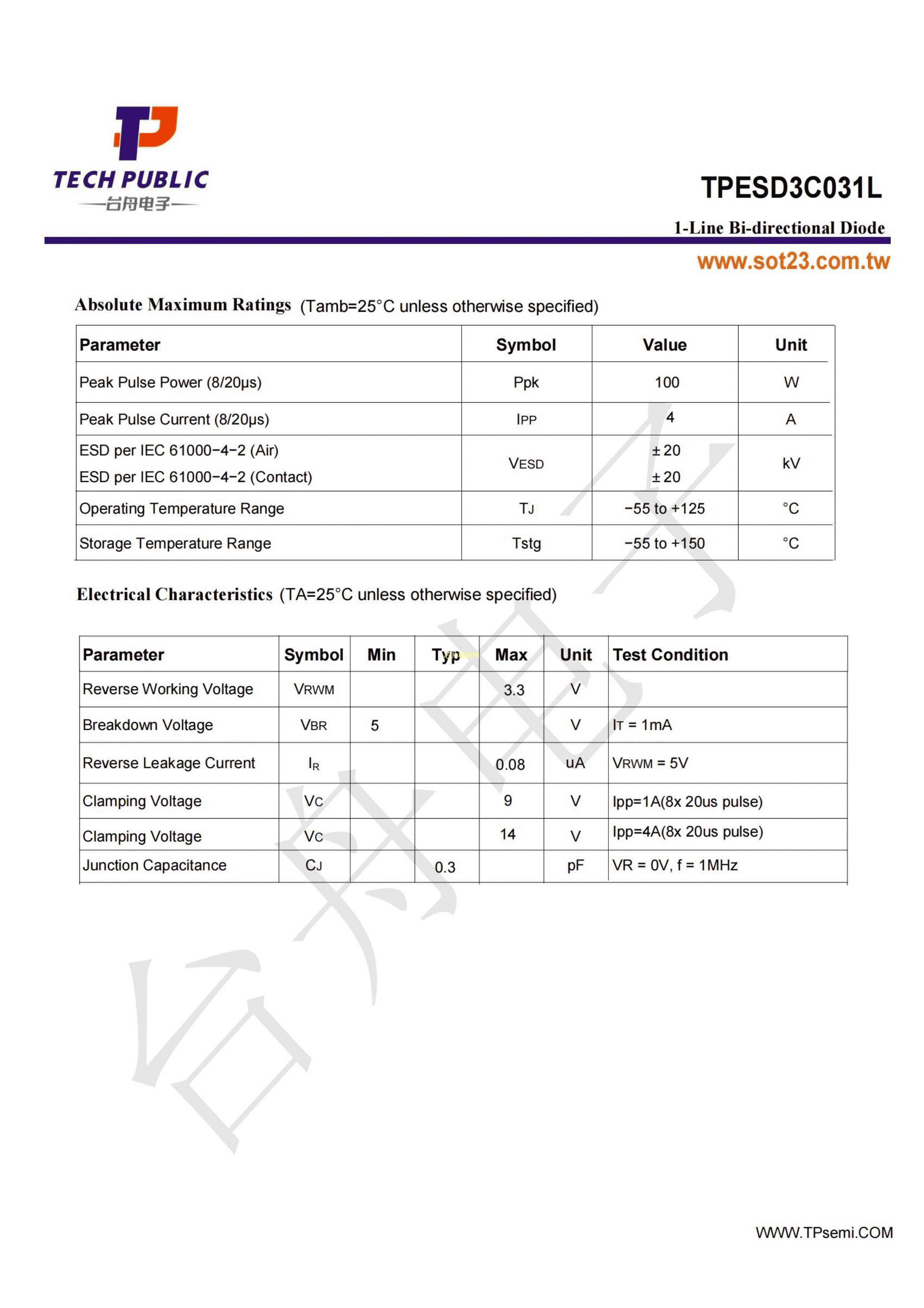 TPESD3C031L数据手册SOD323封装TECH PUBLIC(台舟)PDF规格书,中英文下载