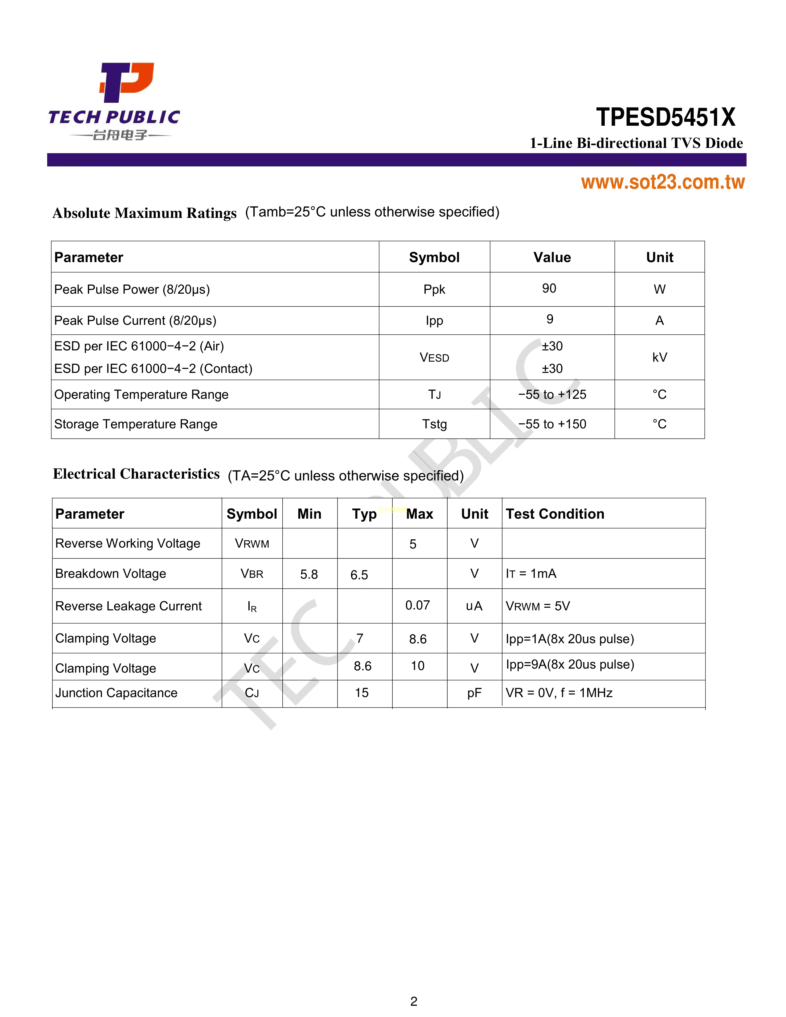 TPESD5451X数据手册0201封装TECHPUBLIC(台舟)PDF规格书,中英文下载