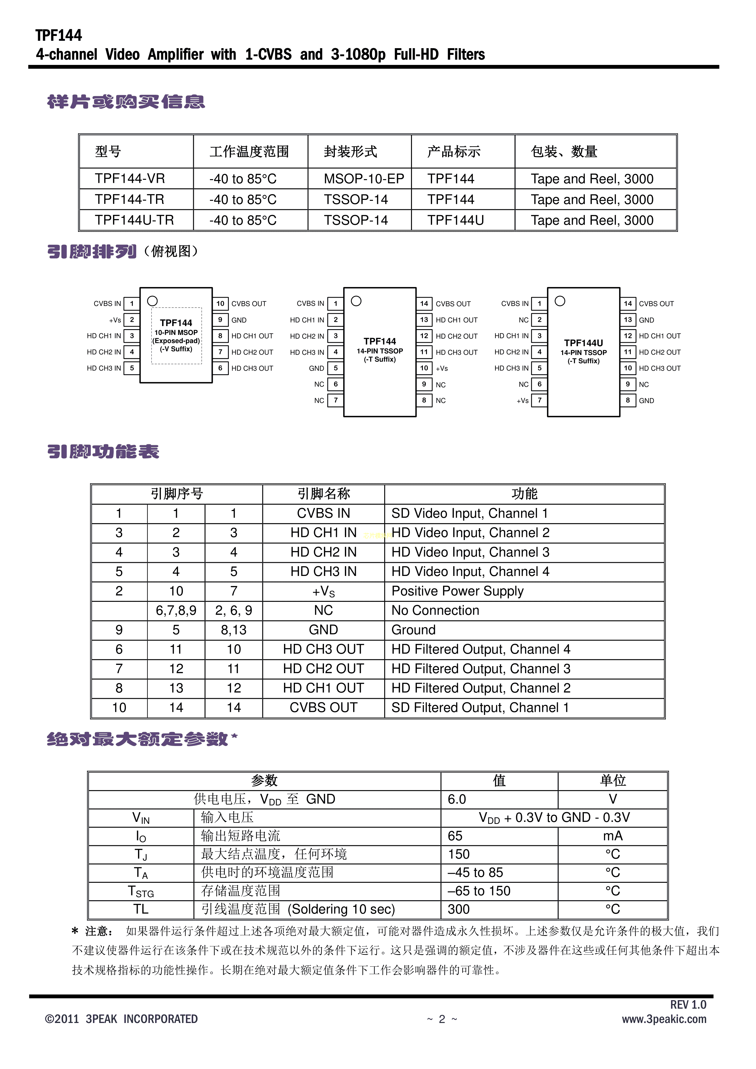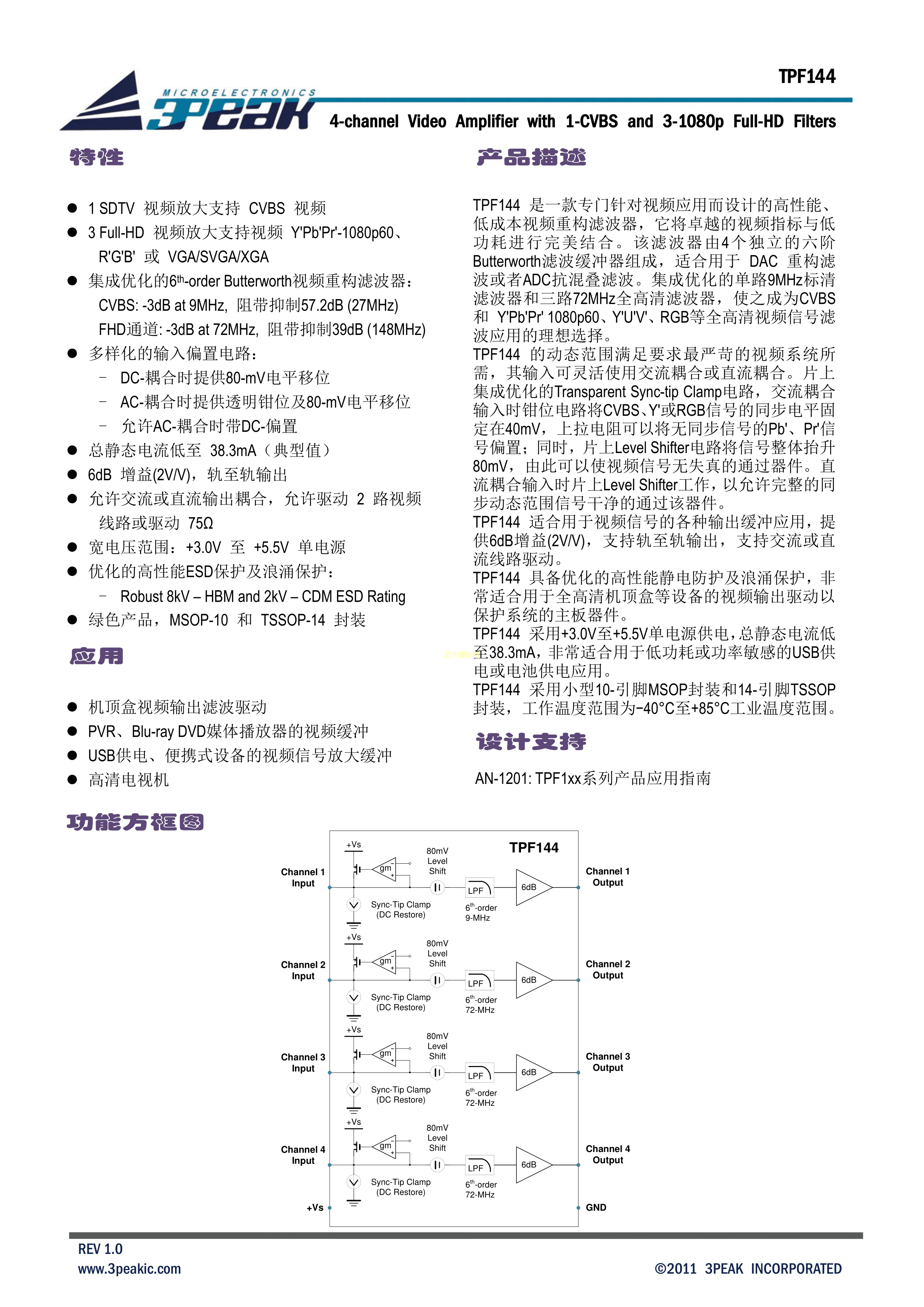 TPF144-VR数据手册MSOP-10EP封装3PEAKPDF规格书,中英文下载
