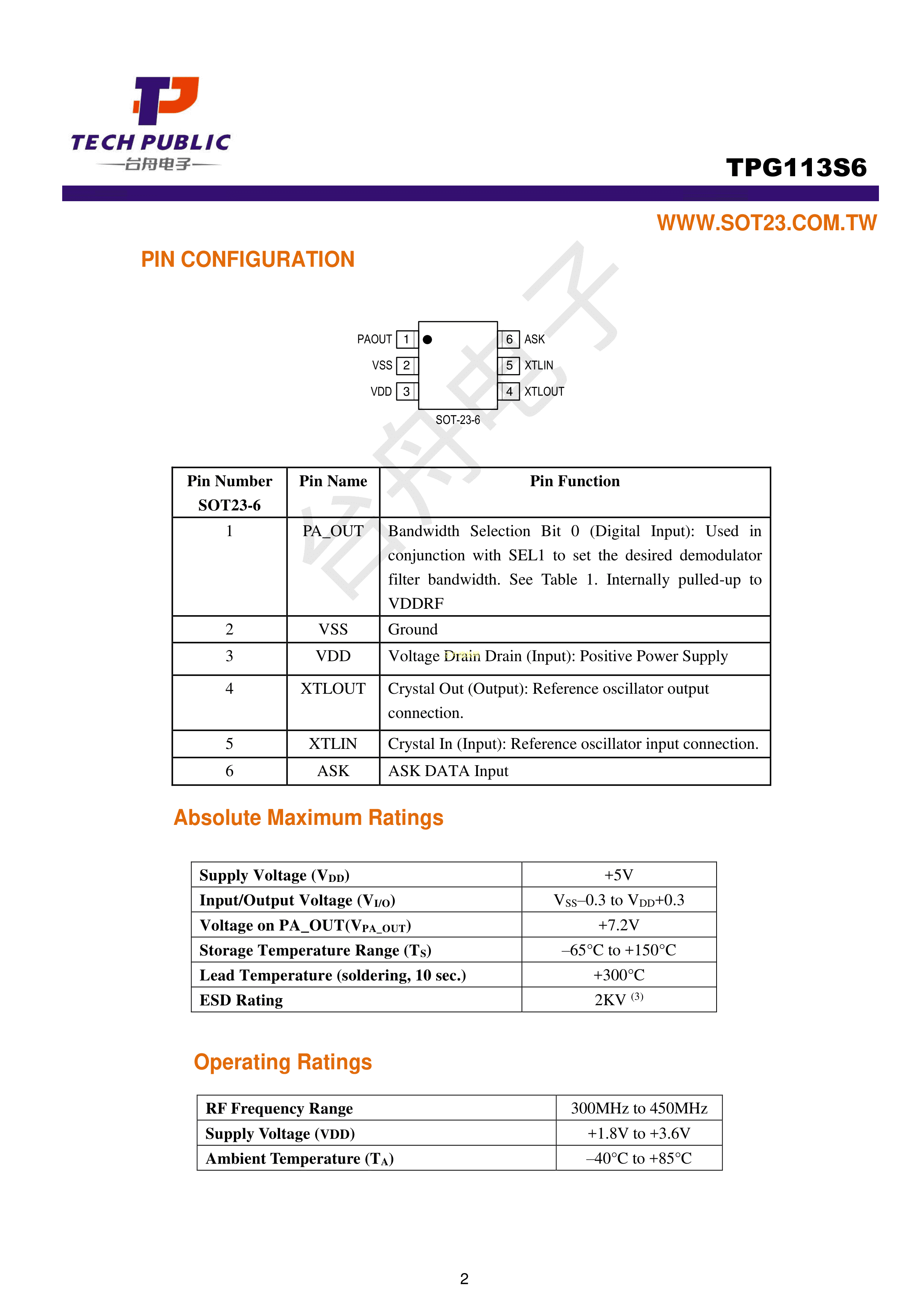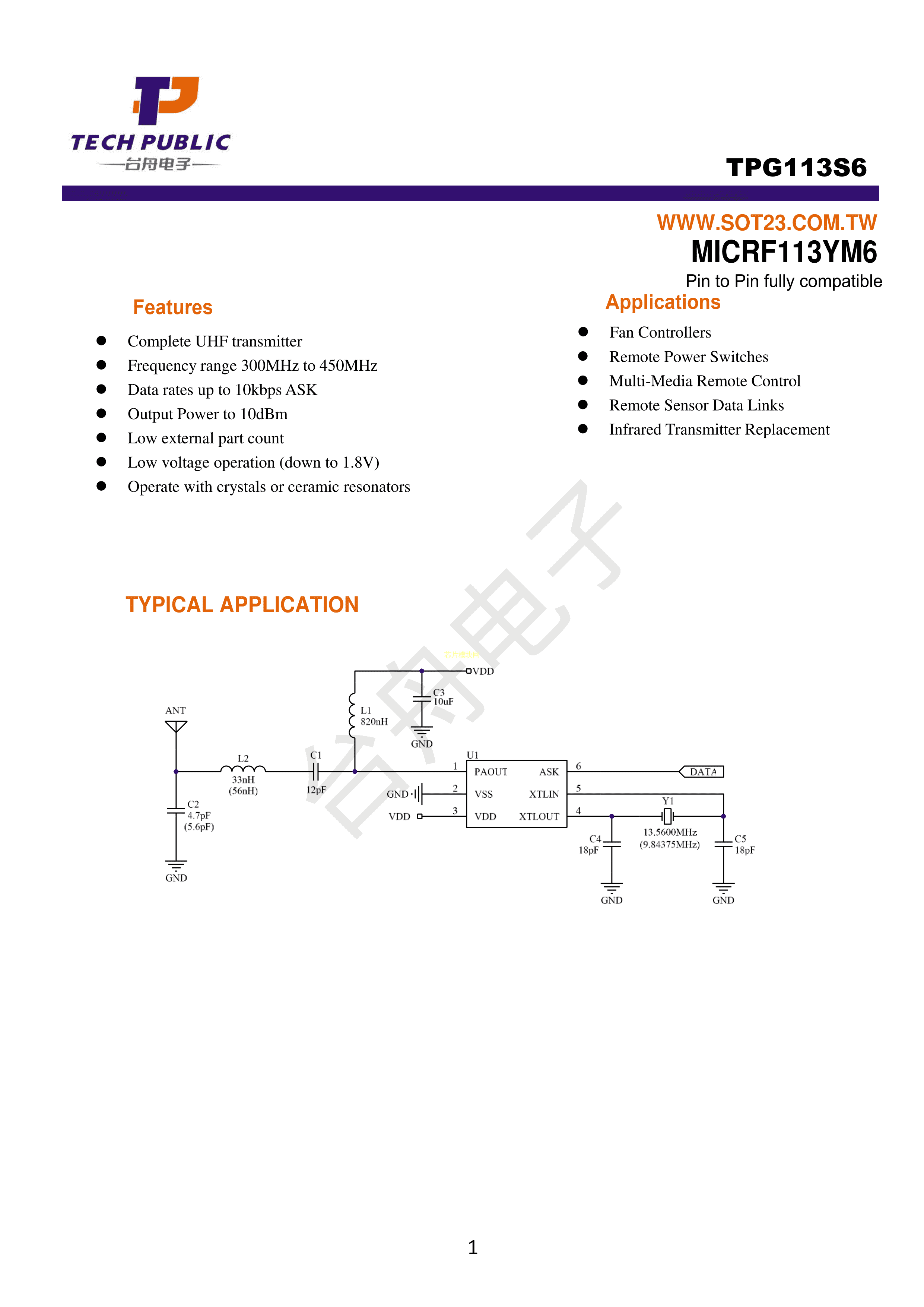 TPG113S6数据手册SOT-23-6封装TECH-PUBLIC(台舟)PDF规格书,中英文下载