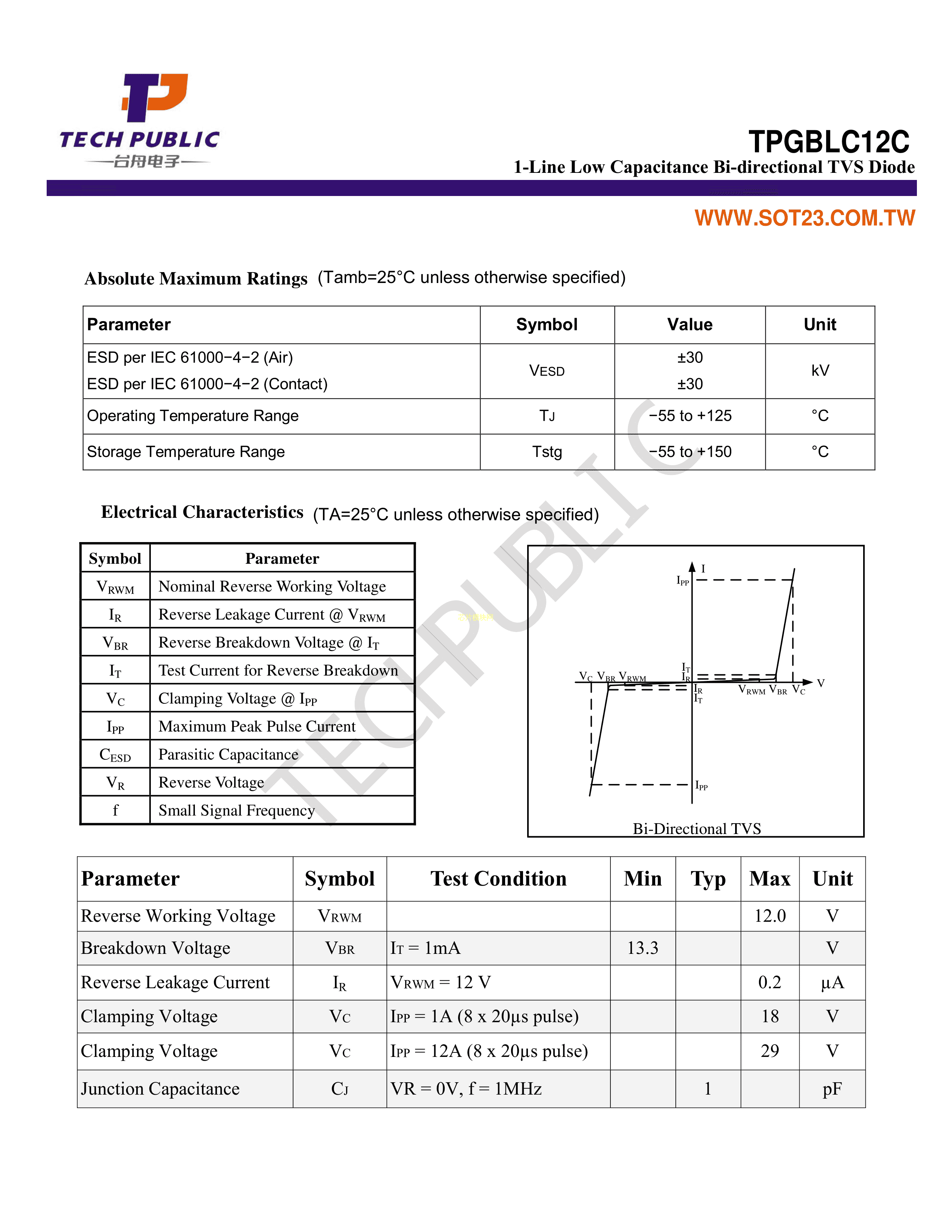 TPGBLC12C数据手册SOD-323封装TECHPUBLIC(台舟)PDF规格书,中英文下载
