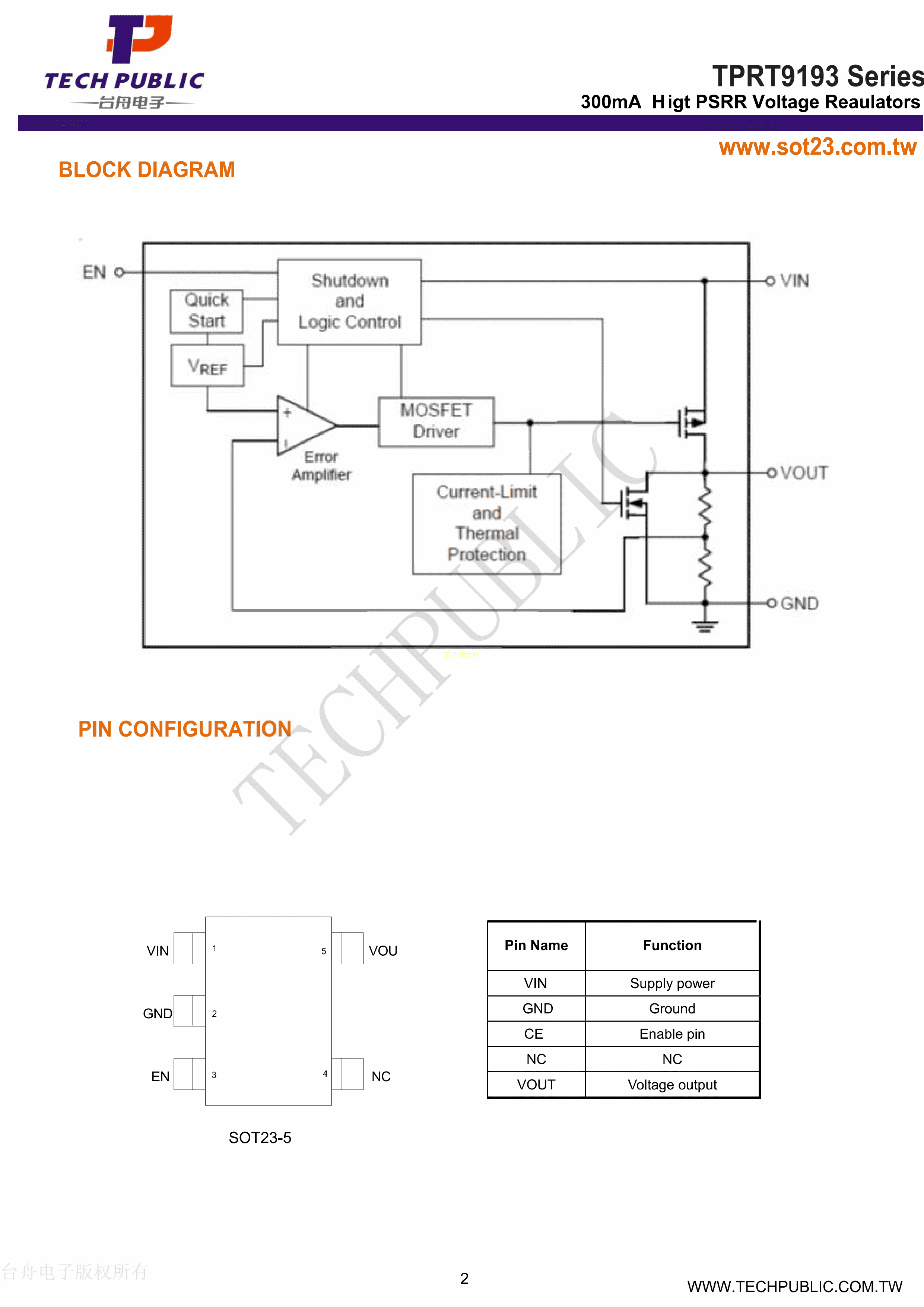 TPRT9193-18GB数据手册SOT-23-5封装TECHPUBLIC(台舟)PDF规格书,中英