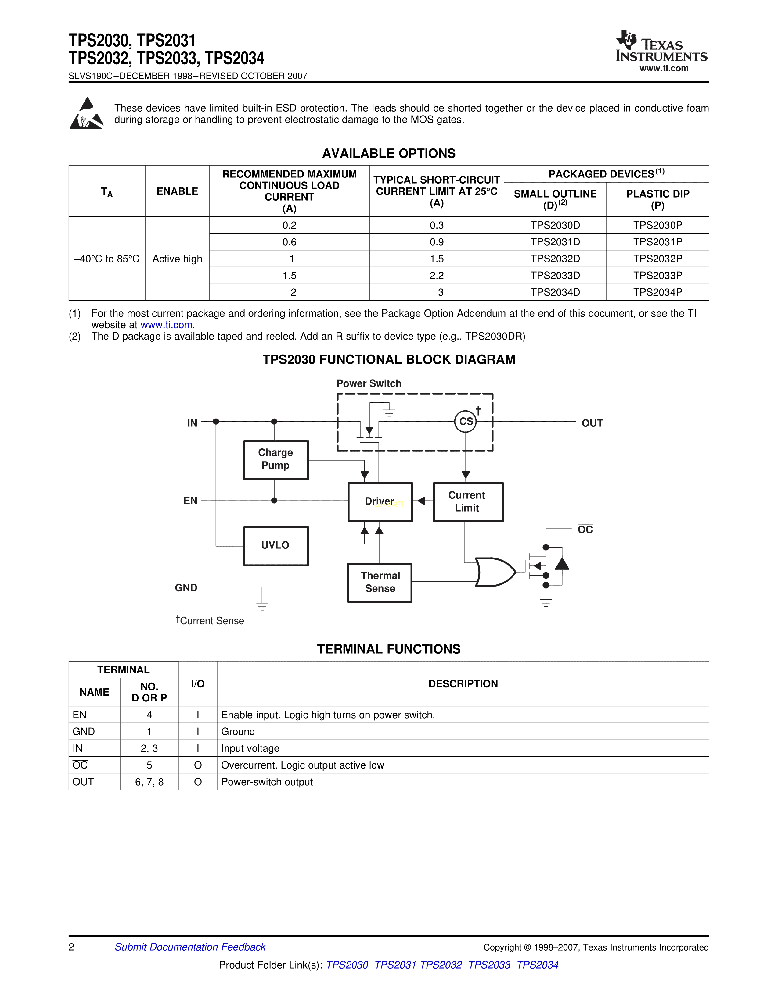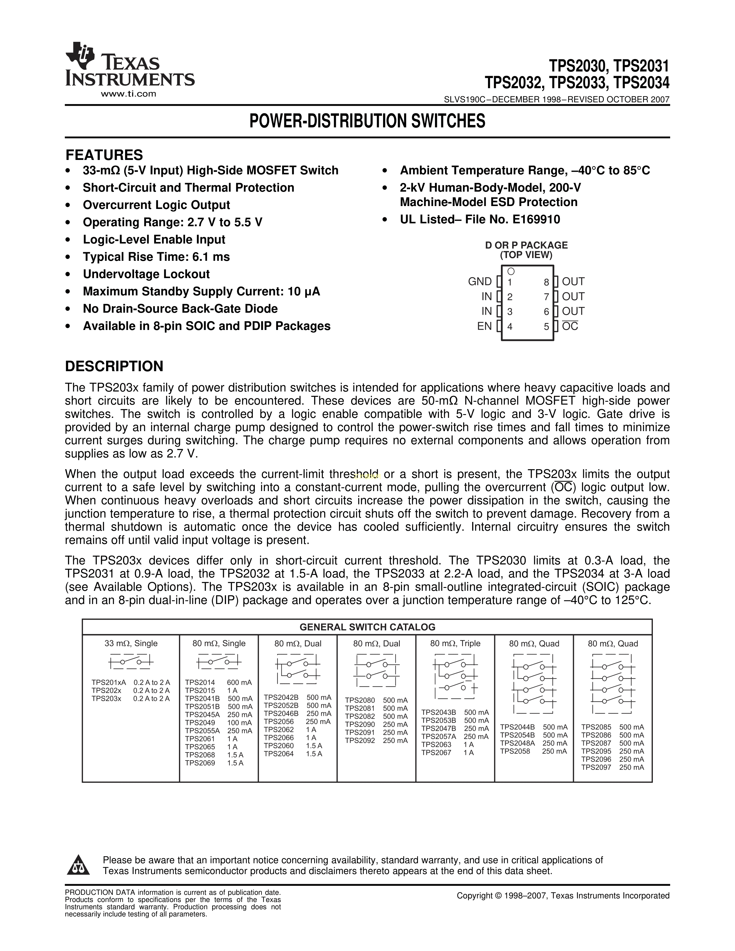 TPS2031P数据手册PDIP-8封装TI(德州仪器)PDF规格书,中英文下载