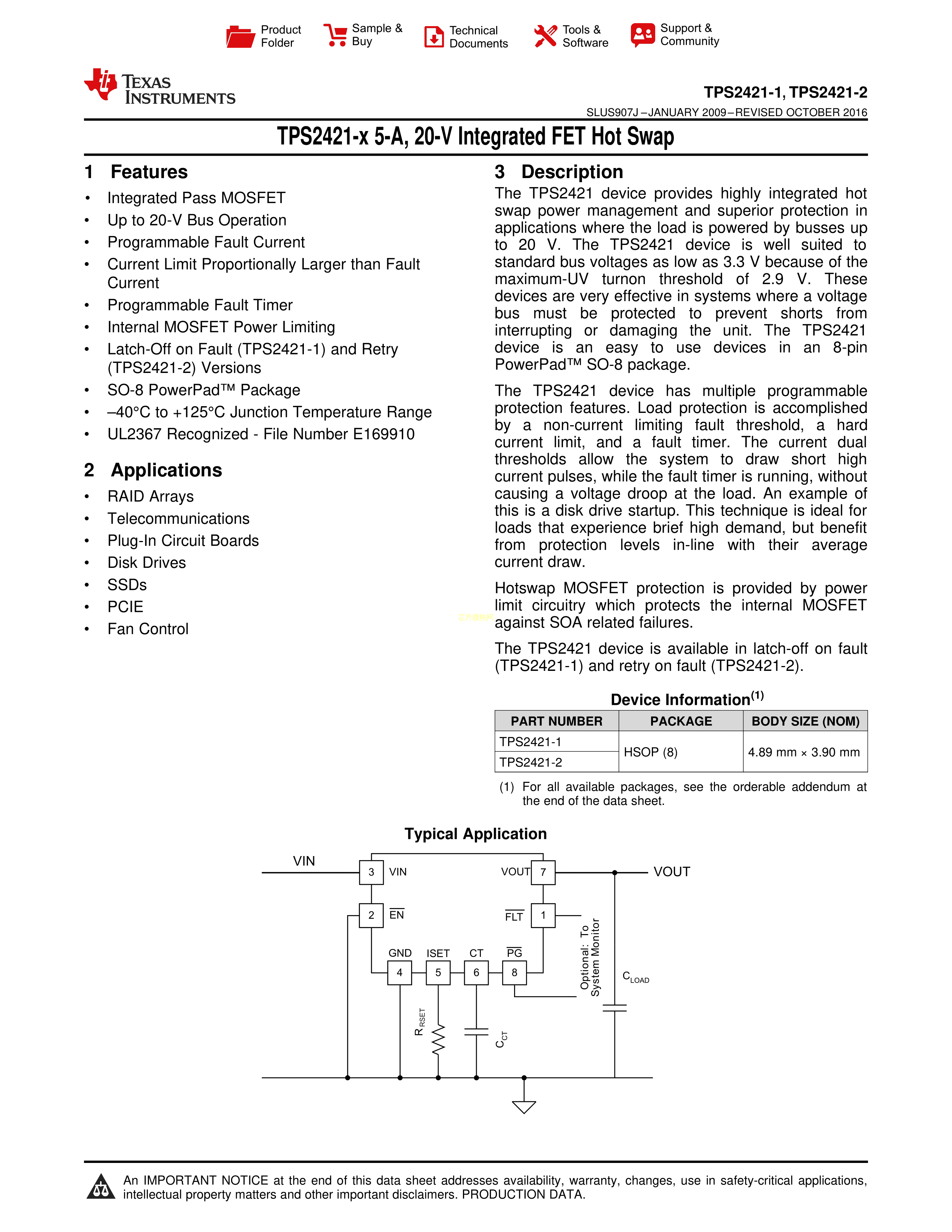 TPS2421-1DDAR数据手册PowerPad-SO-8封装TI(德州仪器)PDF规格书,中英文