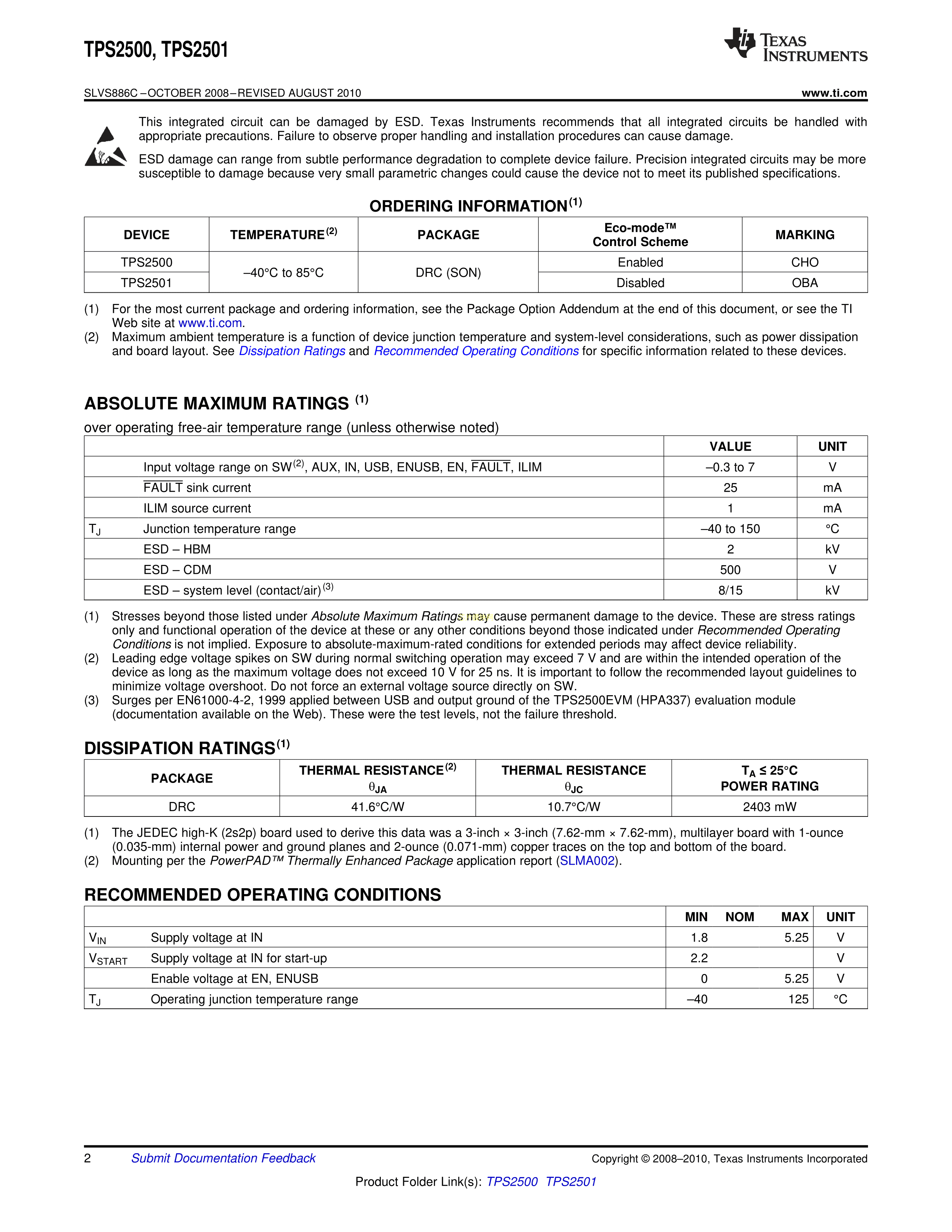TPS2501DRCR数据手册VSON-10封装TI(德州仪器)PDF规格书,中英文下载