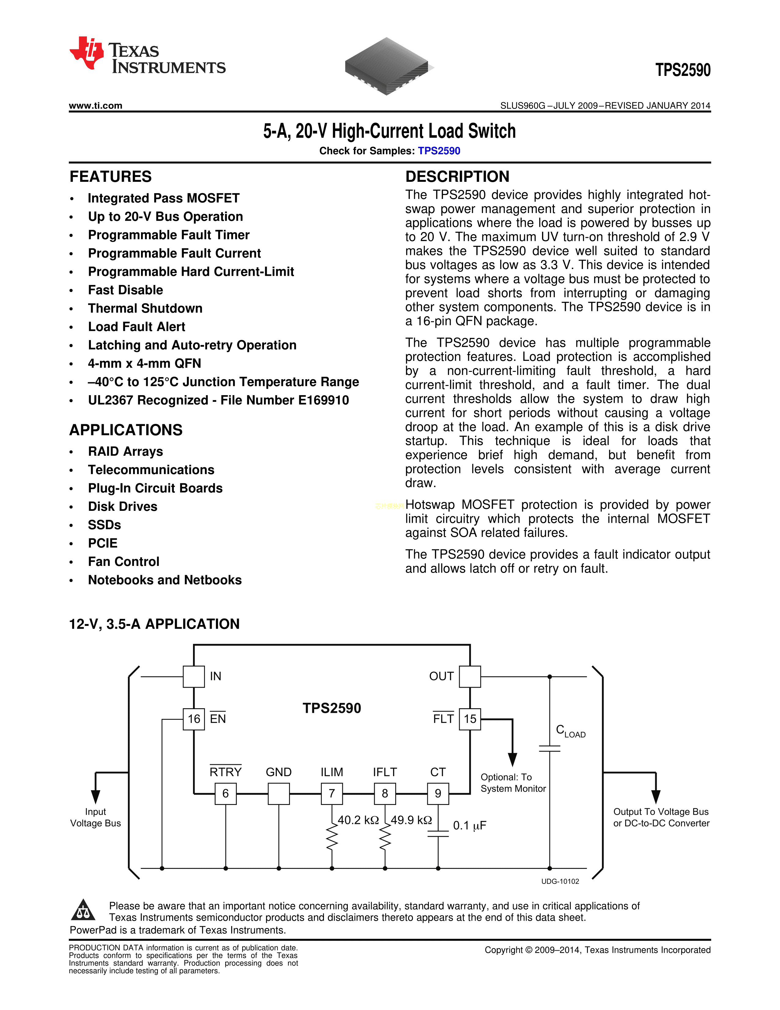 TPS2590RSAR数据手册QFN-16封装TI(德州仪器)PDF规格书,中英文下载