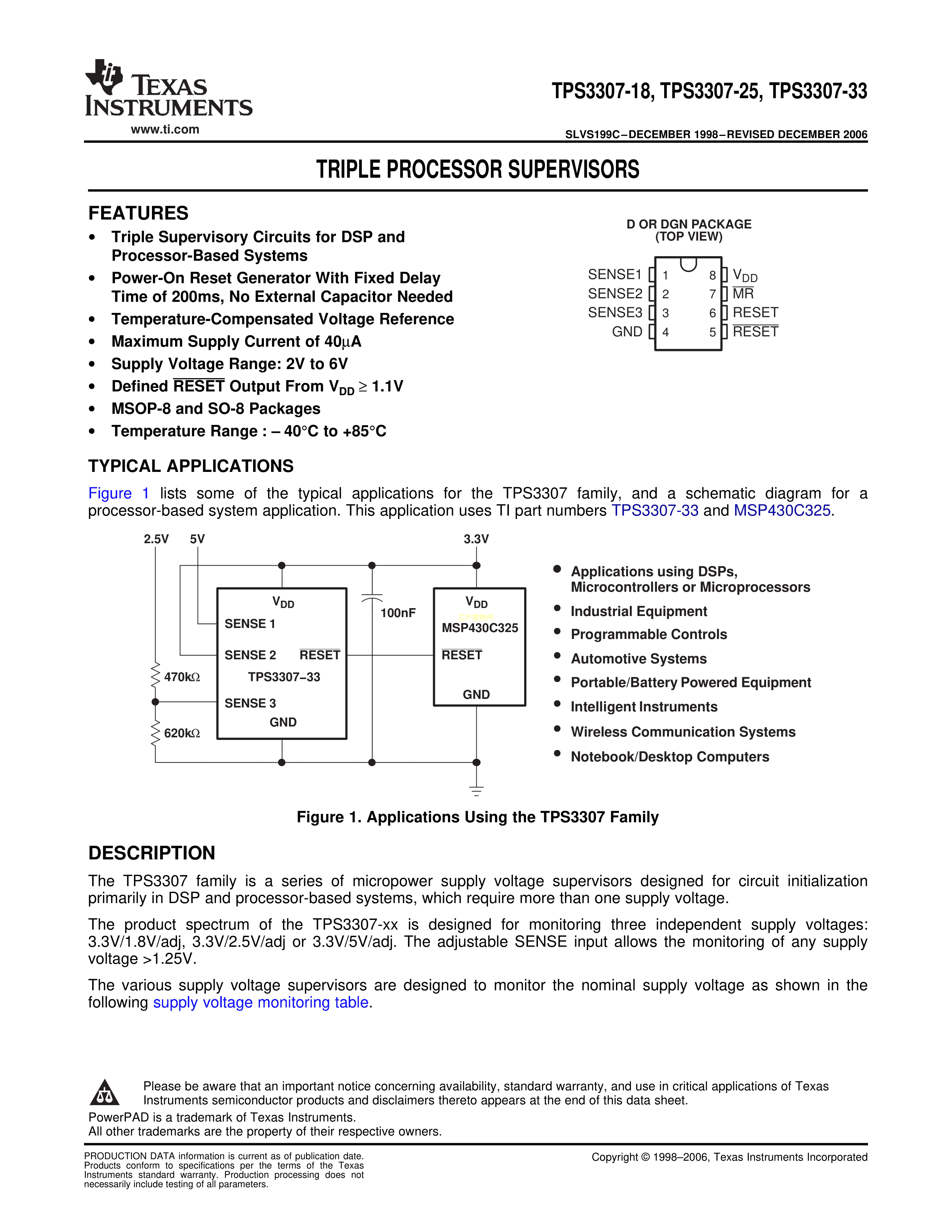 TPS3307-18DR数据手册SOIC-8封装TI(德州仪器)PDF规格书,中英文下载