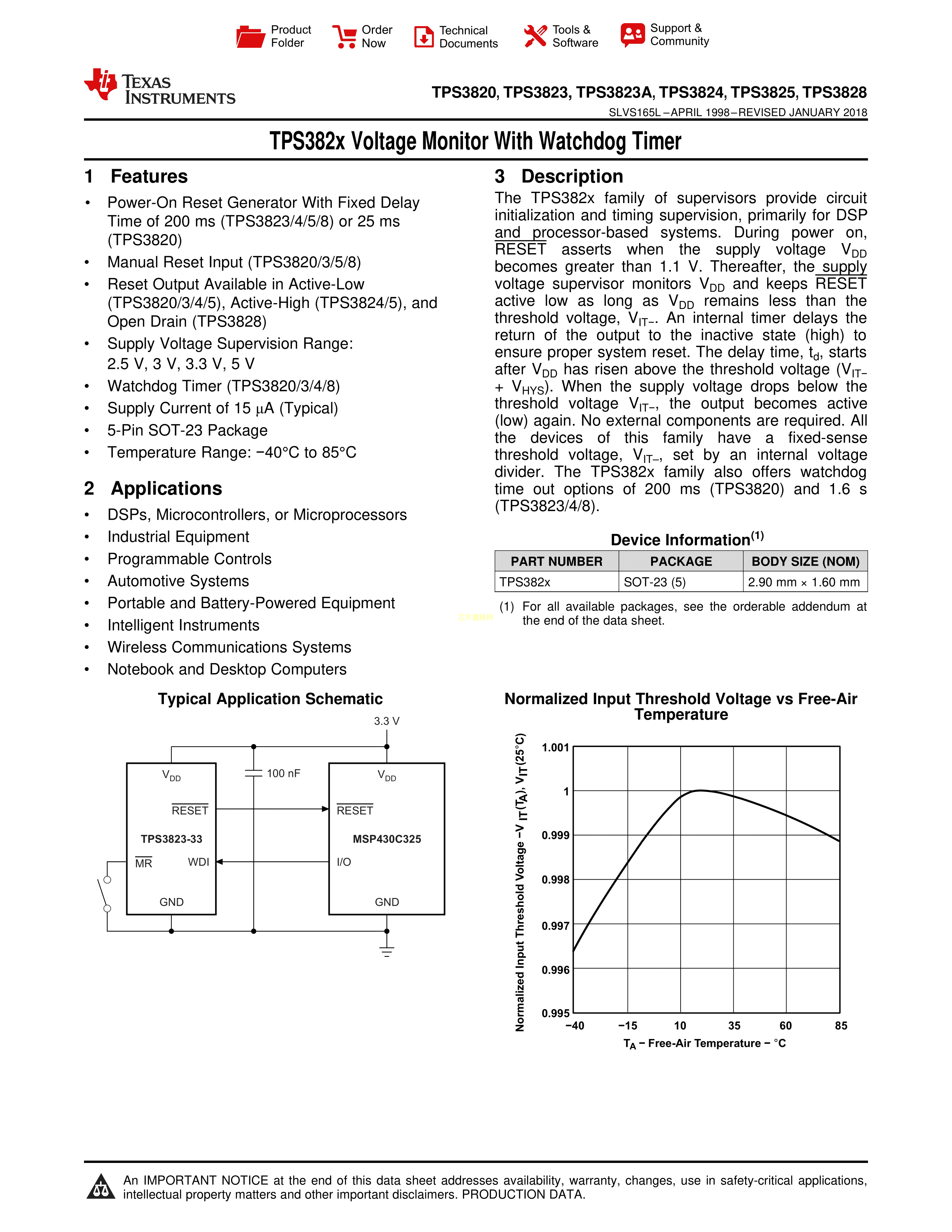 TPS3824-33DBVR数据手册SOT-23-5封装TI(德州仪器)PDF规格书,中英文下载