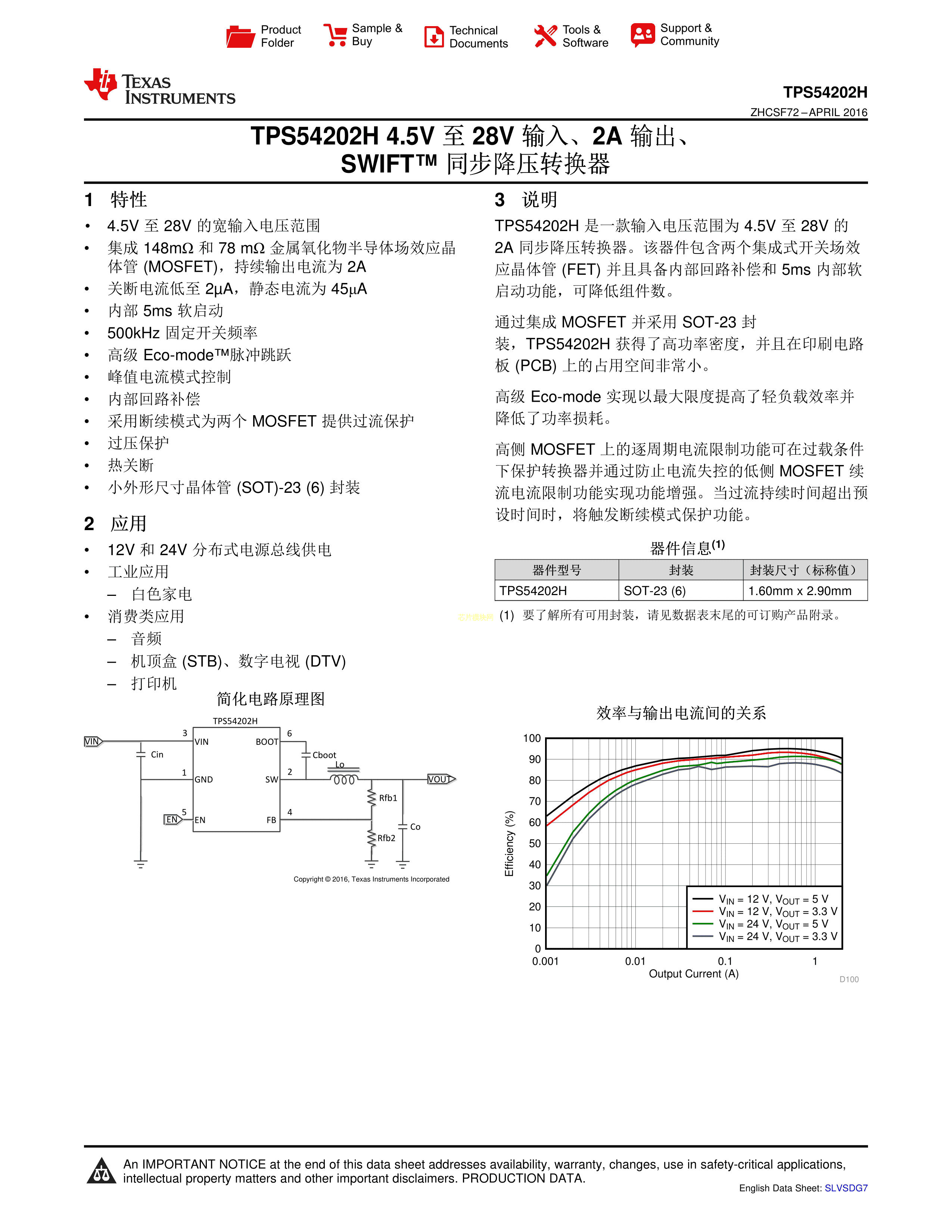TPS54202HDDCT数据手册SOT-23-6封装TI(德州仪器)PDF规格书,中英文下载