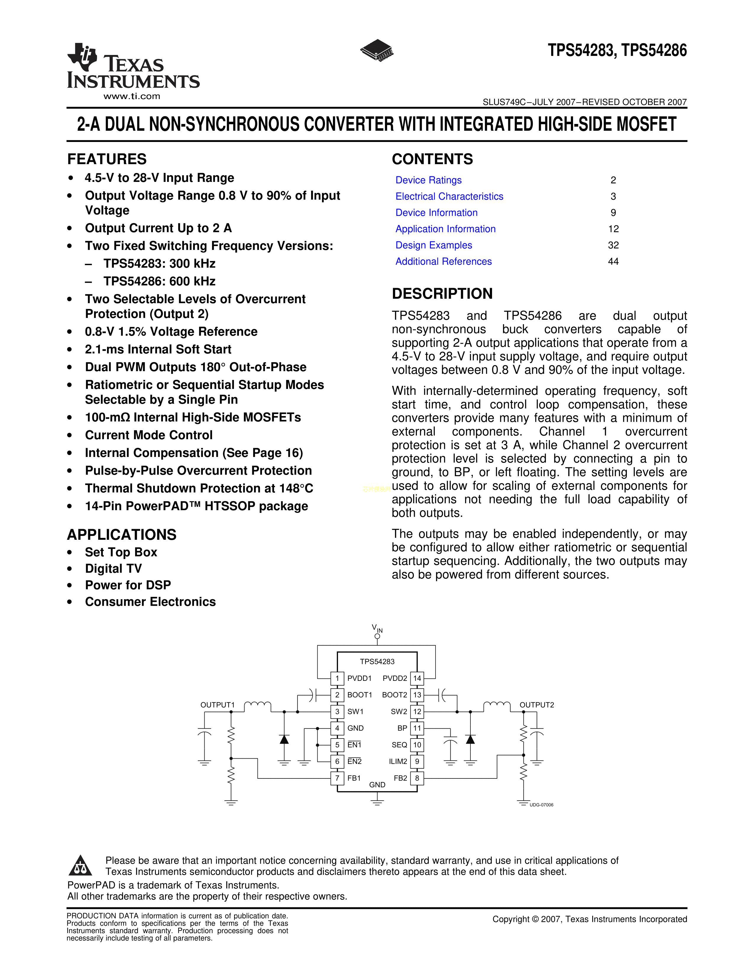 TPS54286PWP数据手册HTSSOP-14封装TI(德州仪器)PDF规格书,中英文下载