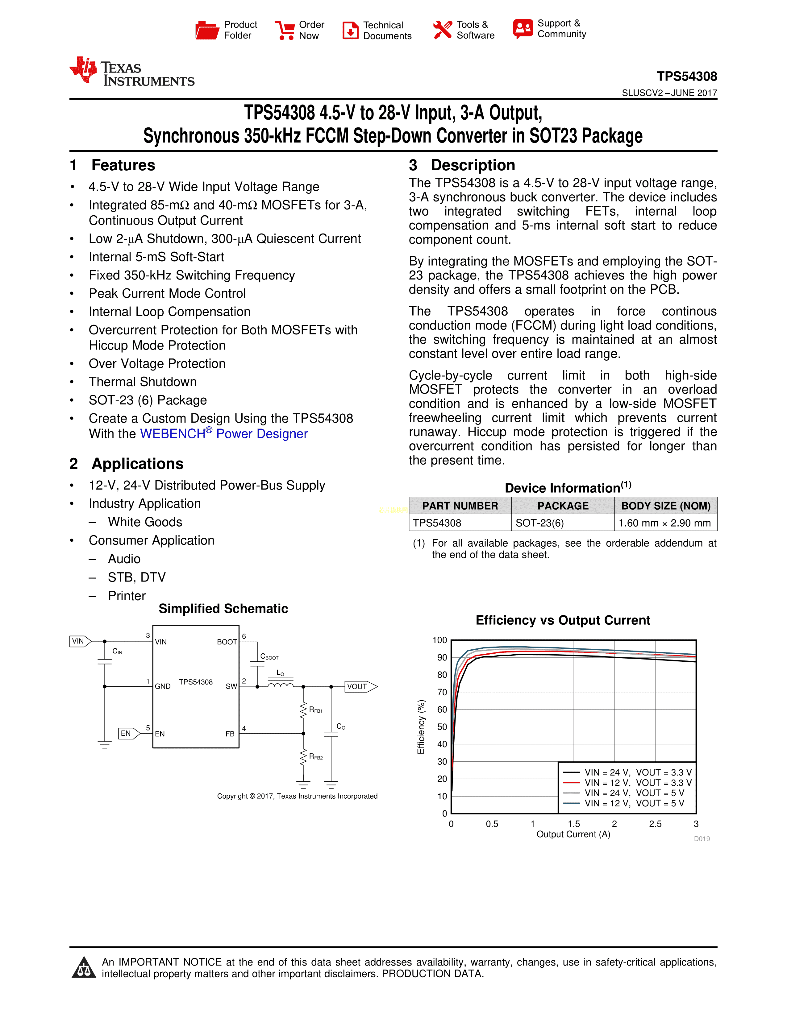 TPS54308DDCR数据手册SOT-23-6封装TI(德州仪器)PDF规格书,中英文下载