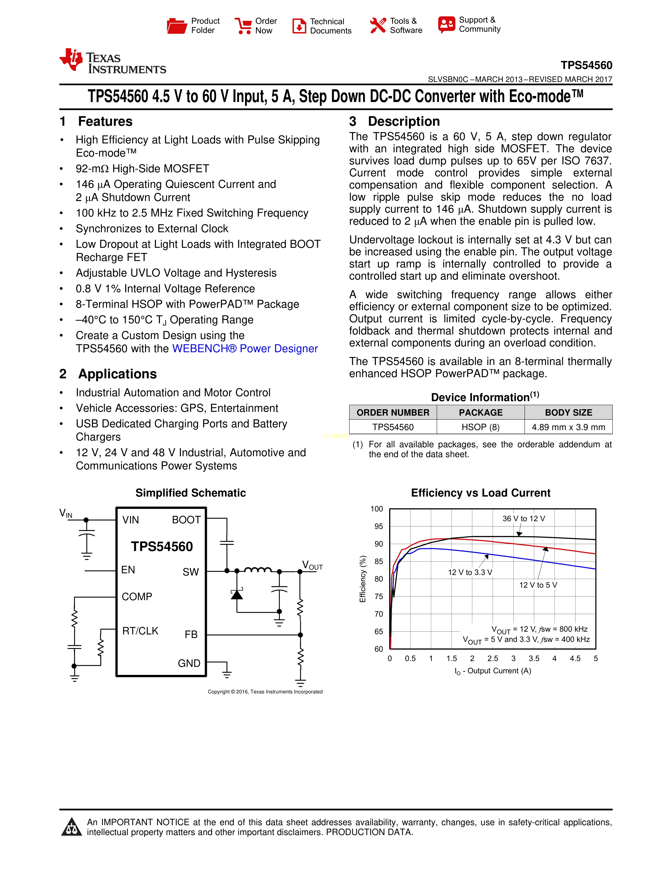 TPS54560DDA数据手册PowerPad-SO-8封装TI(德州仪器)PDF规格书,中英文下载