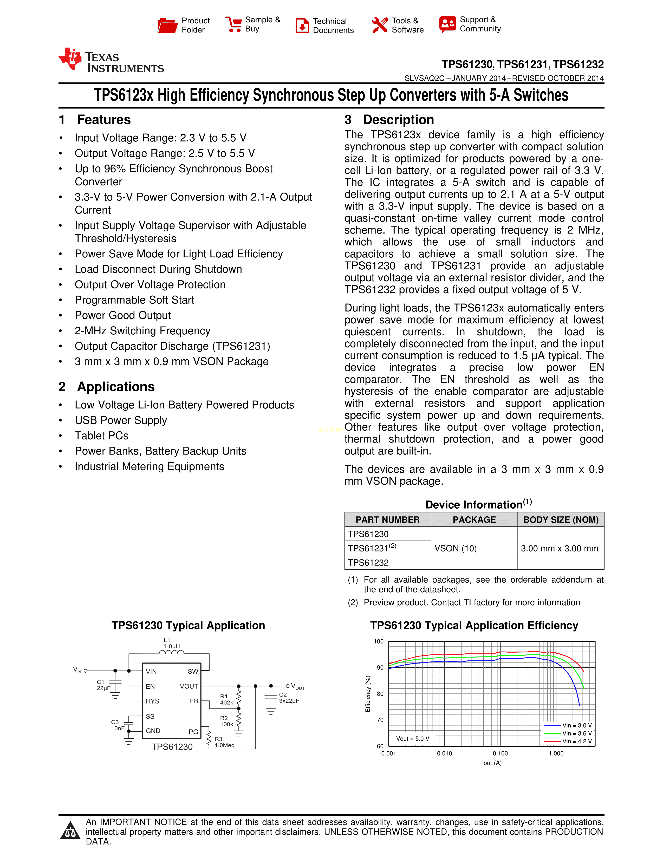 TPS61230DRCR数据手册VSON-10_EP封装TI(德州仪器)PDF规格书,中英文下载