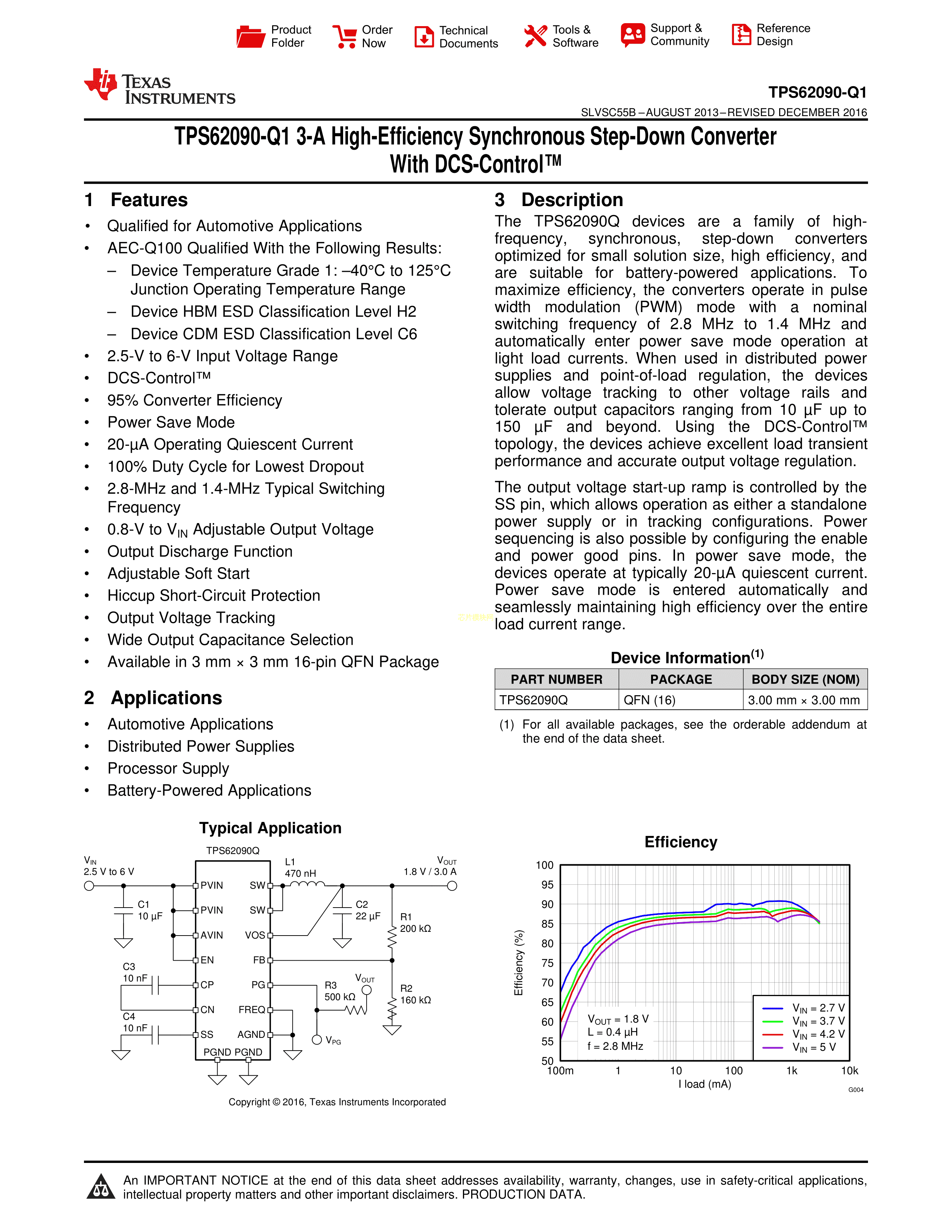 TPS62090QRGTRQ1数据手册VQFN-16封装TI(德州仪器)PDF规格书,中英文下载