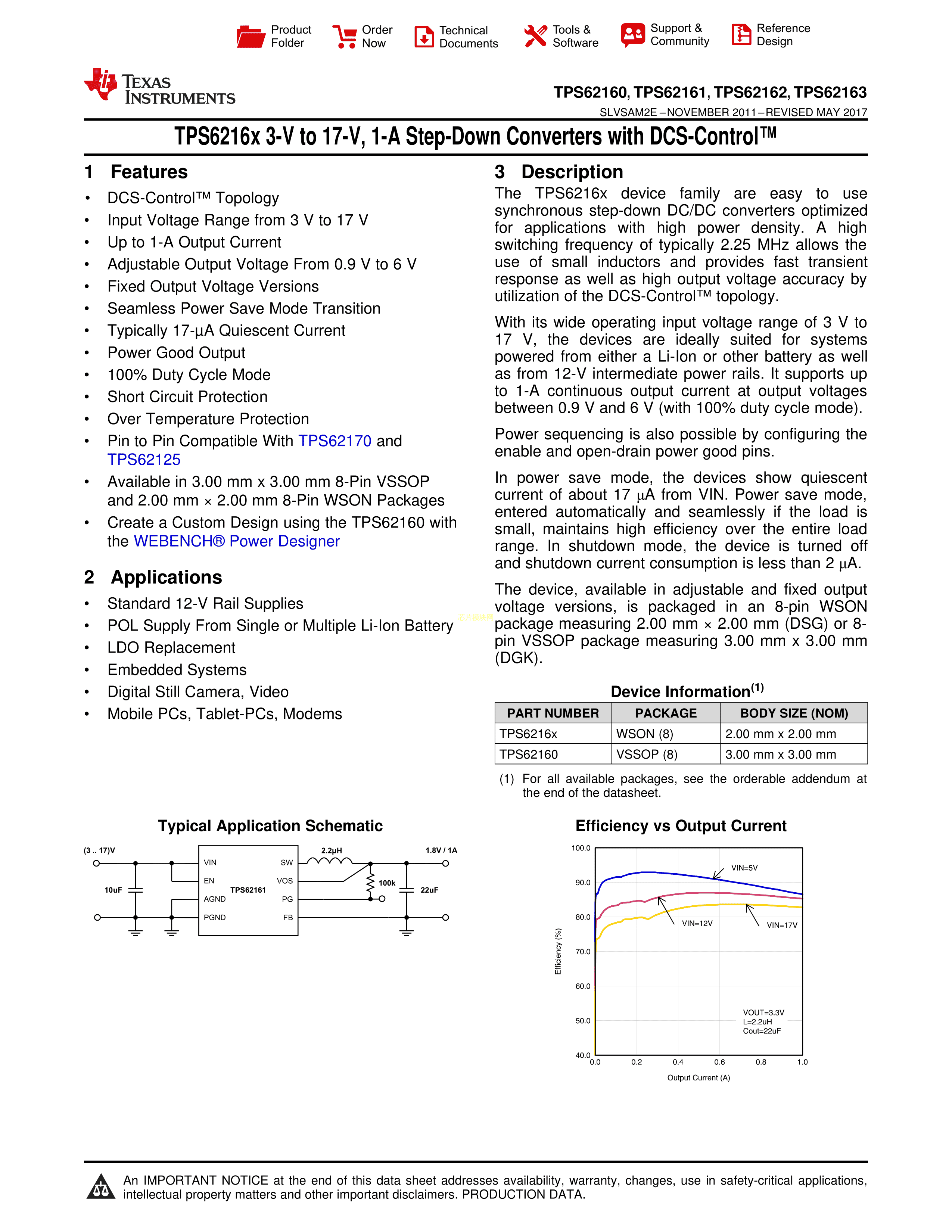 TPS62160DSGR数据手册WSON-8封装TI(德州仪器)PDF规格书,中英文下载