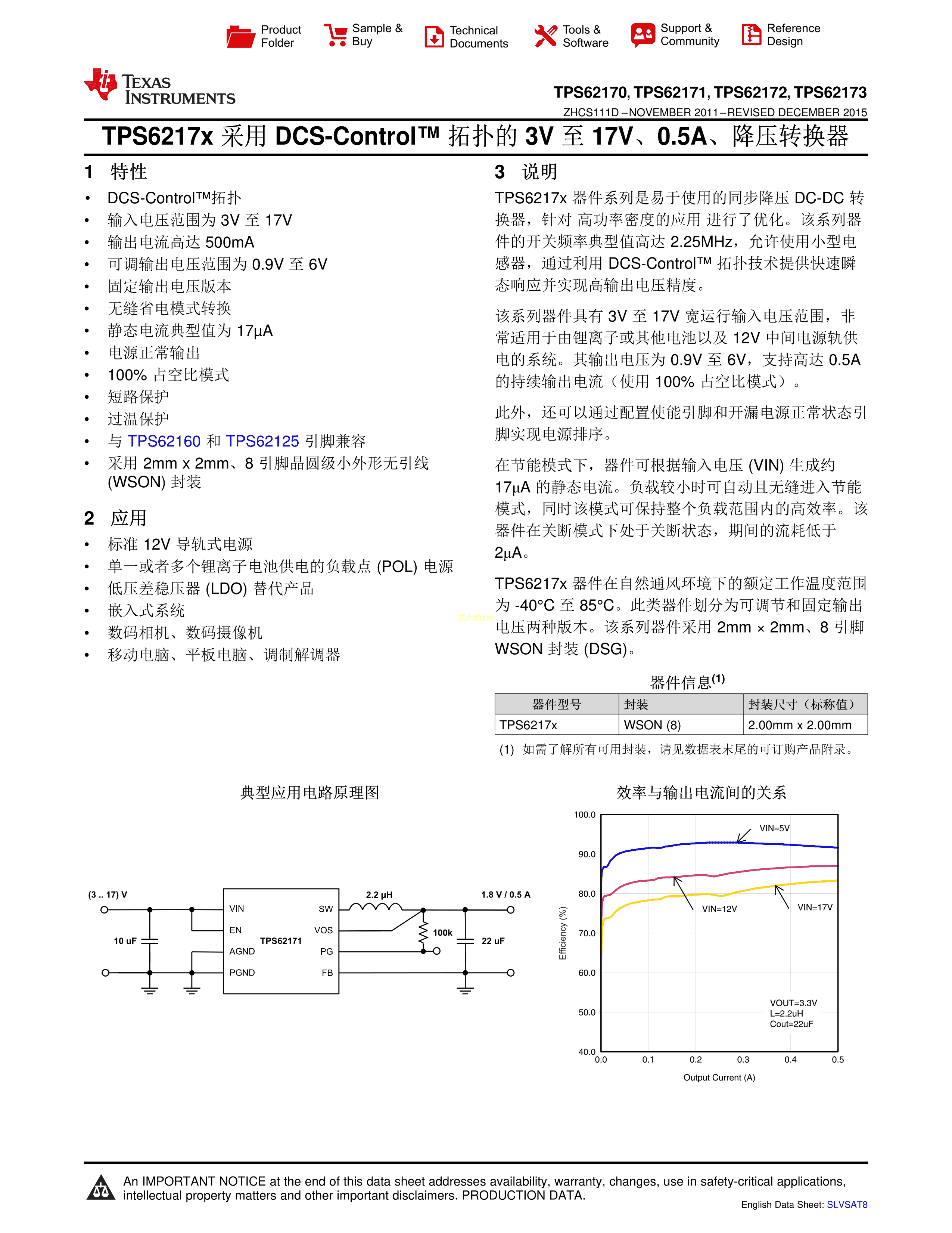 TPS62173DSGT数据手册WSON-8_2x2mm封装TI(德州仪器)PDF规格书,中英文下载